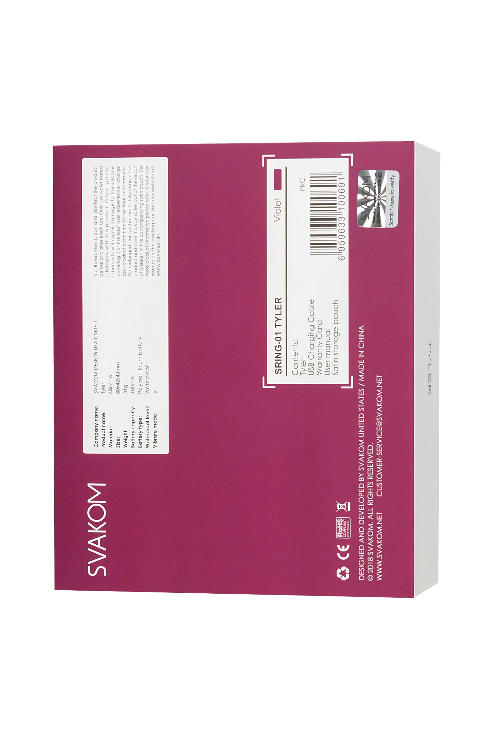 —Виброкольцо Svakom Tyler, силикон, фиолетовый