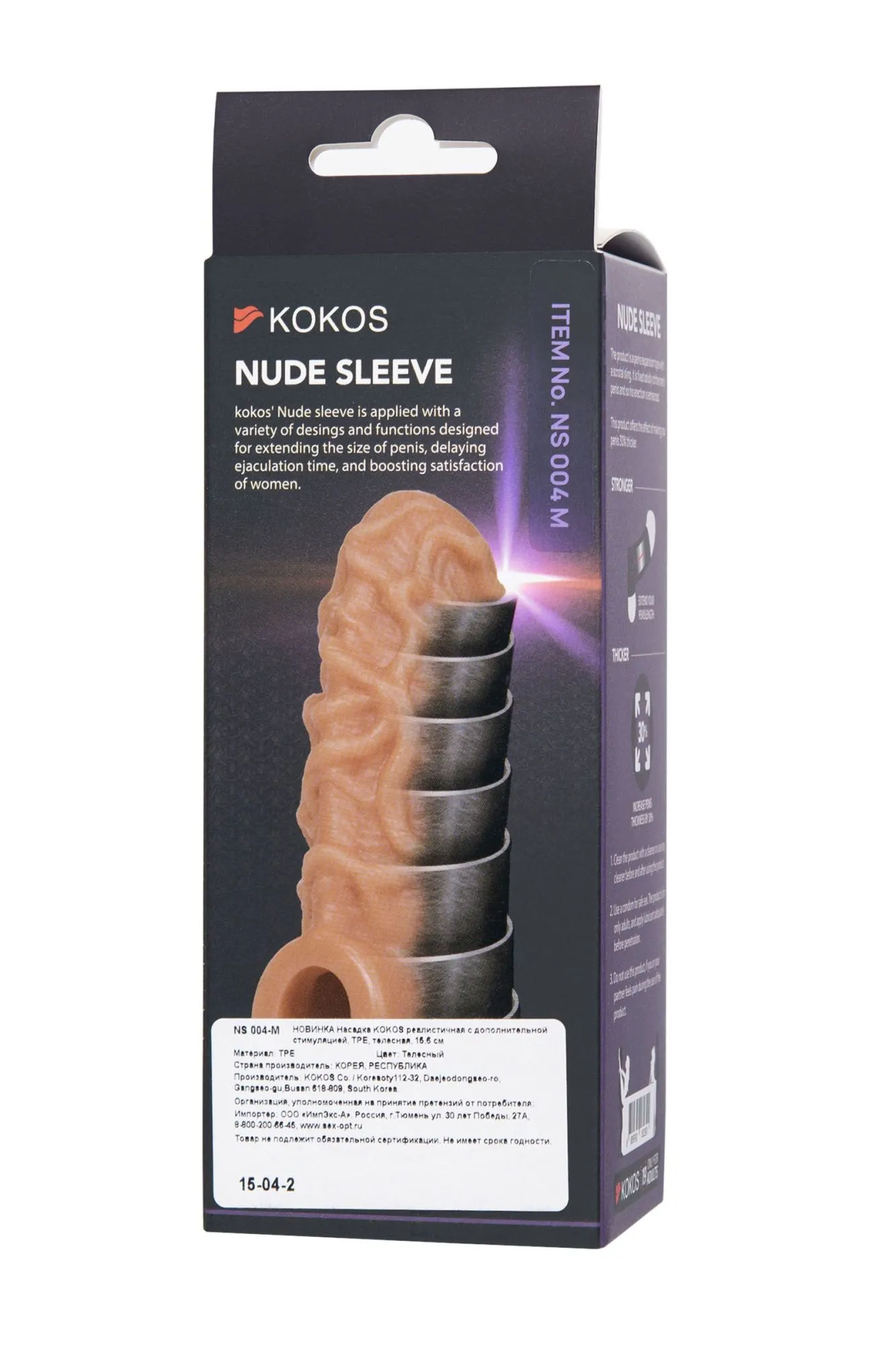 Открытая насадка с фантазийным рельефом от KOKOS предназначена воплотить фантазии о взаимном удовольствии. Реалистичная насадка на пенис - необходимый элемент для вашей сексуальной игры, если вы хотите максимально удовлетворить свою партнершу и сделать секс незабываемым. Откройте новые возможности: Увеличенный объем полового члена на 30% добавляет мужчине уверенности в своих сексуальных возможностях. Дополнительная стимуляция партнерши с помощью рельефа для яркого и насыщенного оргазма. Увеличение продолжительности полового акта у мужчины - задержка эякуляции, и наращивание темпа приближения оргазма у женщины. Насадка имеет форму “рукав”, плотно прилегает к пенису, создавая дополнительную толщину и оставляя головку открытой. Это позволяет сохранить чувствительность головки, задерживая эякуляцию. В основании есть отверстие для мошонки, с помощью которого вы надежно зафиксируете насадку на пенисе, не ограничиваясь в активных движениях. Насадка, за счет плотного облегания мошонки и головки, усиливает эрекцию. Ярко выраженный рельеф в виде многочисленных выпуклых вен по всему стволу насадки очень хорошо стимулирует зону G, вход во влагалище и настойчиво ласкает чувствительные зоны. Вариативность стимуляции регулируется активным темпом движения вперед-назад и изменением угла проникновения. Дополнительный объем дарит то самое чувство наполненности, увеличивая поток возбуждения. Мужчина тоже будет ощущать стимуляцию за счет давления стенок влагалища на пенис. Супер эластичный материал быстро принимает температуру тела, отлично тянется, сохраняя при этом прочность. Нежное и мягкое покрытие такое же приятное на ощупь, как и человеческая кожа. Насадка сделана из высококачественного безвредного для человеческого организма материала, который прошел необходимые тестирования и сертификацию. Долговечность использования при соблюдении правил хранения и ухода за насадкой. Используйте с насадкой лубрикант только на водной основе. Длина: 12 см Диаметр: 4,0 см Размер: M Цвет: телесный Материал: TPE Страна бренда KOKOS: Корея