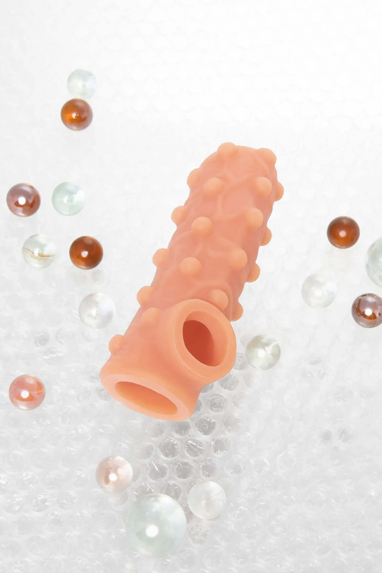 Открытая насадка с фантазийным рельефом от KOKOS предназначена воплотить фантазии о взаимном удовольствии. Реалистичная насадка на пенис - необходимый элемент для вашей сексуальной игры, если вы хотите максимально удовлетворить свою партнершу и сделать секс незабываемым. Откройте новые возможности: Увеличенный объем полового члена на 30% добавляет мужчине уверенности в своих сексуальных возможностях. Дополнительная стимуляция партнерши с помощью рельефа для яркого и насыщенного оргазма. Увеличение продолжительности полового акта у мужчины - задержка эякуляции, и наращивание темпа приближения оргазма у женщины. Насадка имеет форму “рукав”, плотно прилегает к пенису, создавая дополнительную толщину и оставляя головку открытой. Это позволяет сохранить чувствительность головки, задерживая эякуляцию. В основании есть отверстие для мошонки, с помощью которого вы надежно зафиксируете насадку на пенисе, не ограничиваясь в активных движениях. Насадка, за счет плотного облегания мошонки и головки, усиливает эрекцию. Выпуклый рельеф в виде многочисленных вен и внушительных шариков по всему стволу насадки очень хорошо стимулирует зону G, вход во влагалище и настойчиво ласкает чувствительные зоны. Вариативность стимуляции регулируется активным темпом движения вперед-назад и изменением угла проникновения. Дополнительный объем дарит то самое чувство наполненности, увеличивая поток возбуждения. Мужчина тоже будет ощущать стимуляцию за счет давления стенок влагалища на пенис. Супер эластичный материал быстро принимает температуру тела, отлично тянется, сохраняя при этом прочность. Нежное и мягкое покрытие такое же приятное на ощупь, как и человеческая кожа. Насадка сделана из высококачественного безвредного для человеческого организма материала, который прошел необходимые тестирования и сертификацию. Долговечность использования при соблюдении правил хранения и ухода за насадкой. Используйте с насадкой лубрикант только на водной основе. Длина: 14 см Диаметр: 4,4 см Размер: L Цвет: телесный Материал: TPE Страна бренда KOKOS: Корея