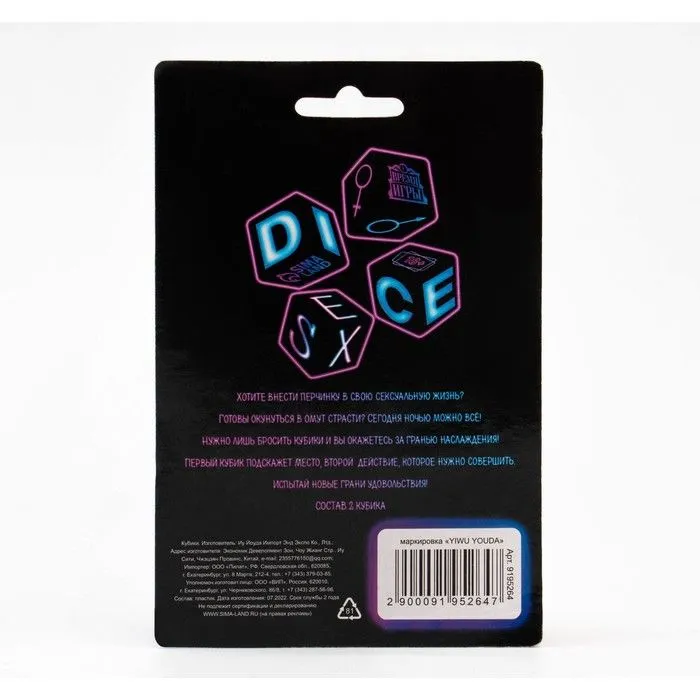 Один кубик подскажет, какой позе вы предадитесь этой ночью, а второй — где вы это сделаете. Забудьте про все запреты, будет горячо!