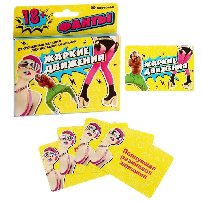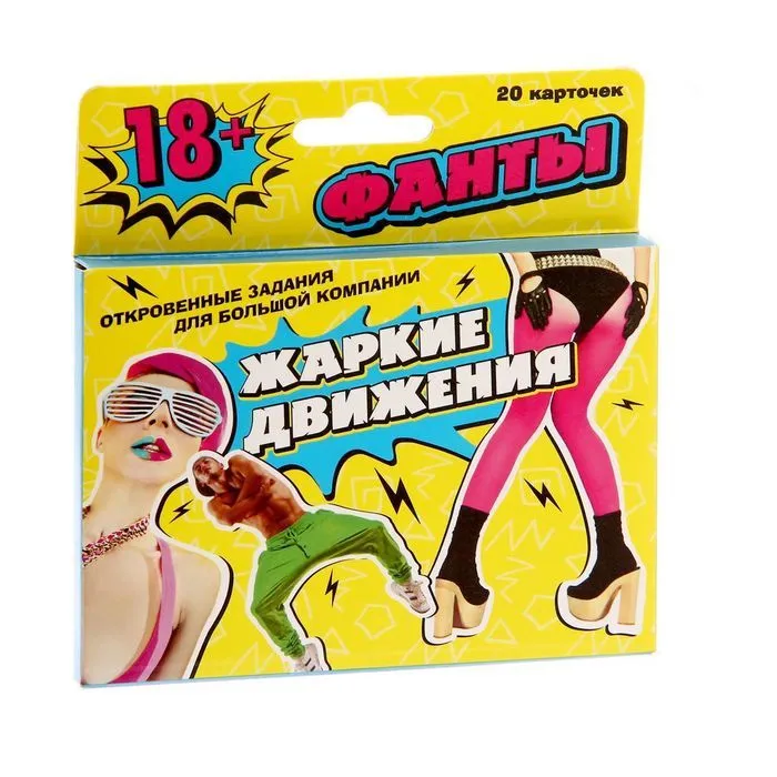 Убедитесь в этом сами, открыв фанты «Жаркие движения». Скорее собирайте компанию друзей и приготовьтесь уйти в отрыв! Вас ждут очень откровенные задания, которые позволят раскрепоститься и сделать вечеринку незабываемой. Кстати, карточки лучше не читать до начала праздника — так будет гораздо интереснее!