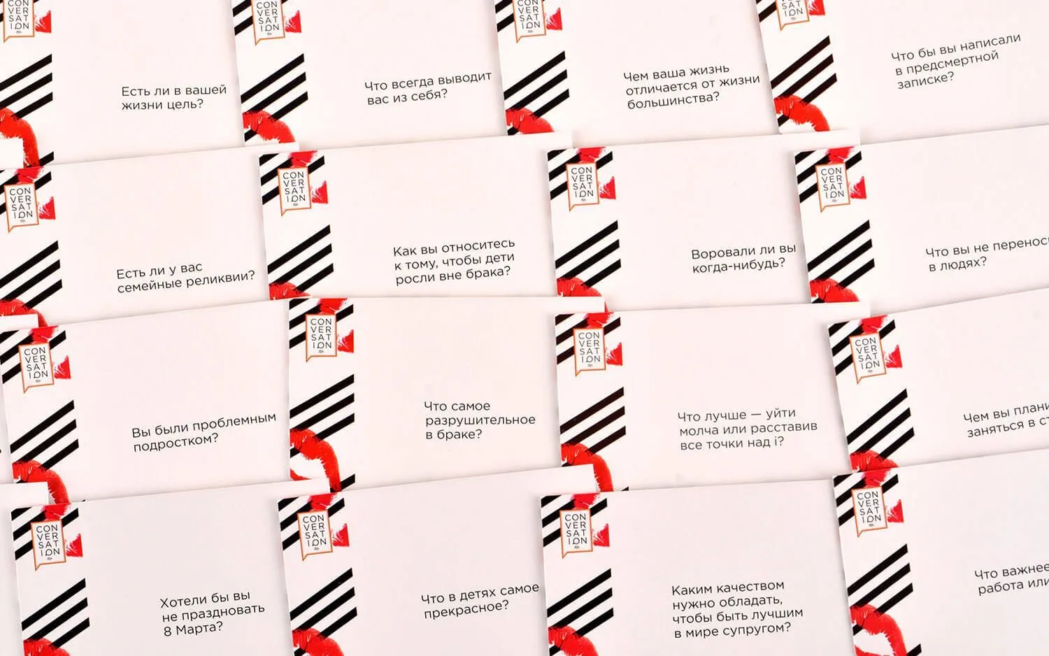 Игра "Конверсейшн. Любовное настроение" состоит из 149 карточек с вопросами для интересной беседы и поможет Вам лучше узнать своего друга или вторую половинку. Вам попадутся как простые вопросы, так и более сложные, ответ на которые нужно будет обдумать и задуматься об отношении к семье, детям, любви или деньгам. Поочередно вытягивая карточки и слушая ответы, Вы сможете