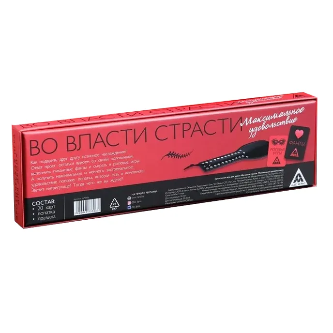 Как подарить друг другу наслаждение? Ответ прост: остаться вдвоём со своей половинкой, выполнить пикантные фанты и сыграть в ролевые игры. А получить максимальное и немного экстремальное удовольствие поможет лопатка-шлёпалка, которая есть в комплекте. Звучит интригующе? Тогда чего же вы ждёте?