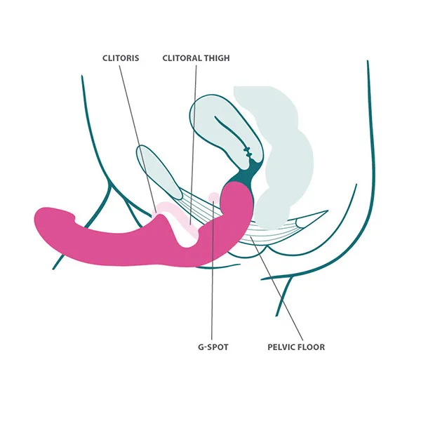 Девушка может сама контролировать свой оргазм. Благодаря ограничителю в средней части игрушки использовать страпон можно и для анального проникновения. Удобная форма позволяет контролировать проникновение страпона и легко повторяет движения активного партнера.