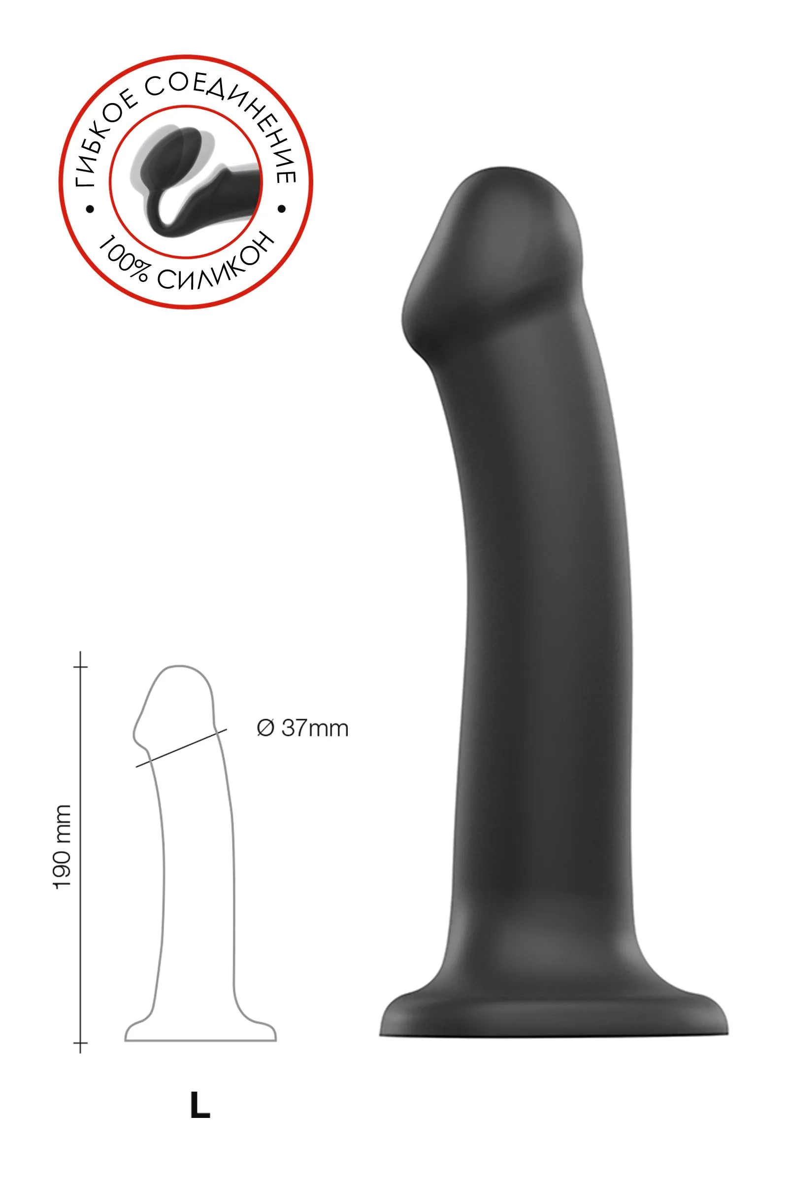 Ремневой нереалистичный страпон на присоске Strap-on-me, L, силикон, черный, 19 см