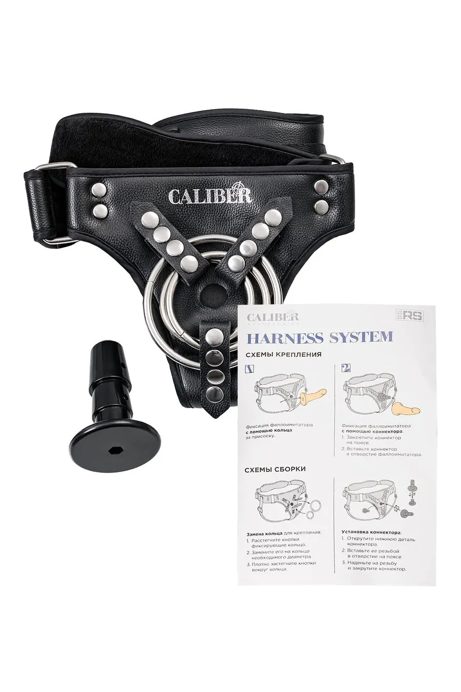 Трусики для страпона RealStick CALIBER, экокожа, черные