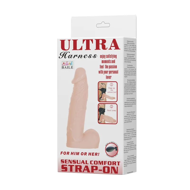 Страпон с грушей для увеличения объема. Трусики из кожзаменителя, регулируются ремнями-"резинками". Материал ПВХ. Длина - 17 см, диаметр головки 3,5 см. Упаковка - картонная коробка с принтом.