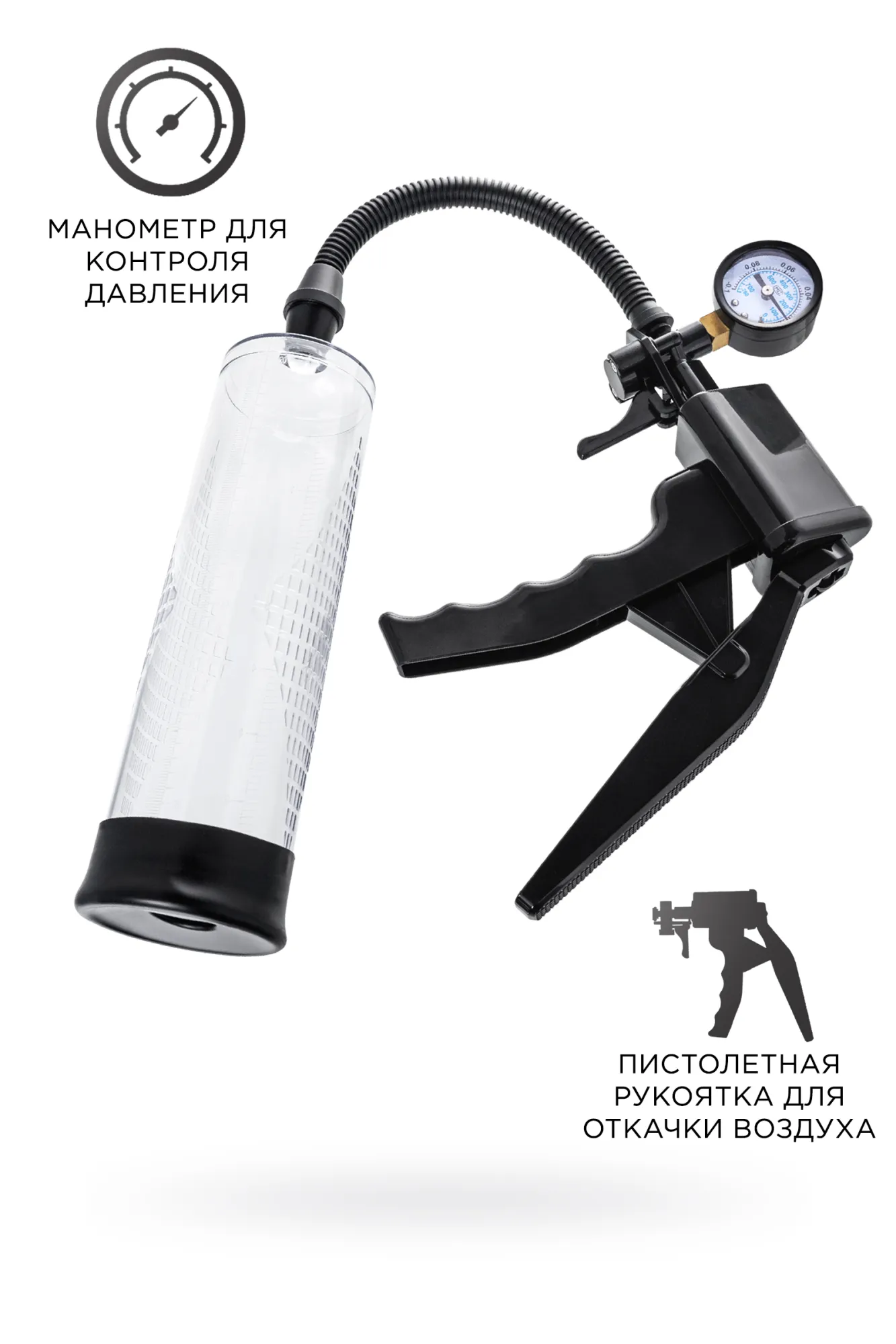 Гарант сексуального могущества для мужчины не только крепкая и надежная эрекция, но и внушительный размер орудия. Для тех, кто стремится достичь впечатляющих результатов в области увеличения размеров пениса, рекомендуется механическая помпа Viggo от Sexus® Men. С помпой Viggo серии Sexus® Men Training легко управлять своими тренировками по пенбилдингу, усиливать эрекцию и получать новые ощущения от полового акта. Для тренировки, а также чтобы подготовить себя к длительному и яркому сексу, вставьте свой пенис в колбу и откачайте воздух с помощью рычага с пистолетной рукояткой. Благодаря отрицательному давлению увеличивается приток крови к половому члену, за уровнем давления удобно следить с помощью встроенного манометра. Прозрачный ABS-пластик позволяет наблюдать как пенис набирает силу и увеличивается в размере. Отслеживайте результаты прямо в процессе с помощью измерительной шкалы. Для достижения ощутимых результатов рекомендуются систематические занятия по программе эффективного тренинга, которая входит в комплект. Регулярное использование вакуумной помпы Viggo от Sexus® Men позволяет: последовательно увеличить длину и диаметр полового члена, делая его более внушительным сделать эрекцию более стабильной, крепкой и продолжительной повысить сексуальную выносливость и половое влечение поднять уверенность в своих возможностях и совершать новые сексуальные подвиги понизить вероятность образований аномальных фиброзных тканей Помпа Viggo комплектуется удобным большим рычагом с пистолетной рукояткой для разрежения воздуха, механическим манометром, клапаном для быстрого сброса давления и программой для эффективных тренировок. Гофрированный шланг, силиконовая насадка, качественные материалы – все вместе это делает использование помпы Viggo не только безопасным, но и комфортным!