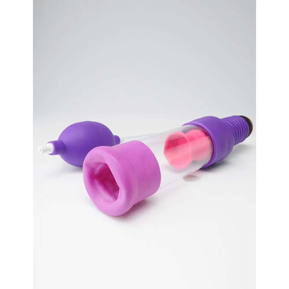 Вибропомпа Pump Worx Head Job Vibrating Pump сделана компанией Pipedream для мужчин, желающих увеличить размер пениса и получить удовольствие в процессе. Для достижения ощутимого эффекта необходимы регулярные тренировки. Действие помпы основано на создании вакуума в колбе при помощи ручной груши. В комплекте также есть вибропуля, для работы которой нужны 2 пальчиковые батарейки (продаются отдельно). Пулю можно вставить в помпу и включать во время тренировок или использовать для стимуляции наружных эрогенных зон. Если Вы хотите продлить эрекцию после тренировки, используйте эрекционное колечко (есть в комплекте). Наденьте кольцо на колбу перед началом занятий, а по окончании стяните его на основание пениса. В комплекте также есть лубрикант и чистящее средство.