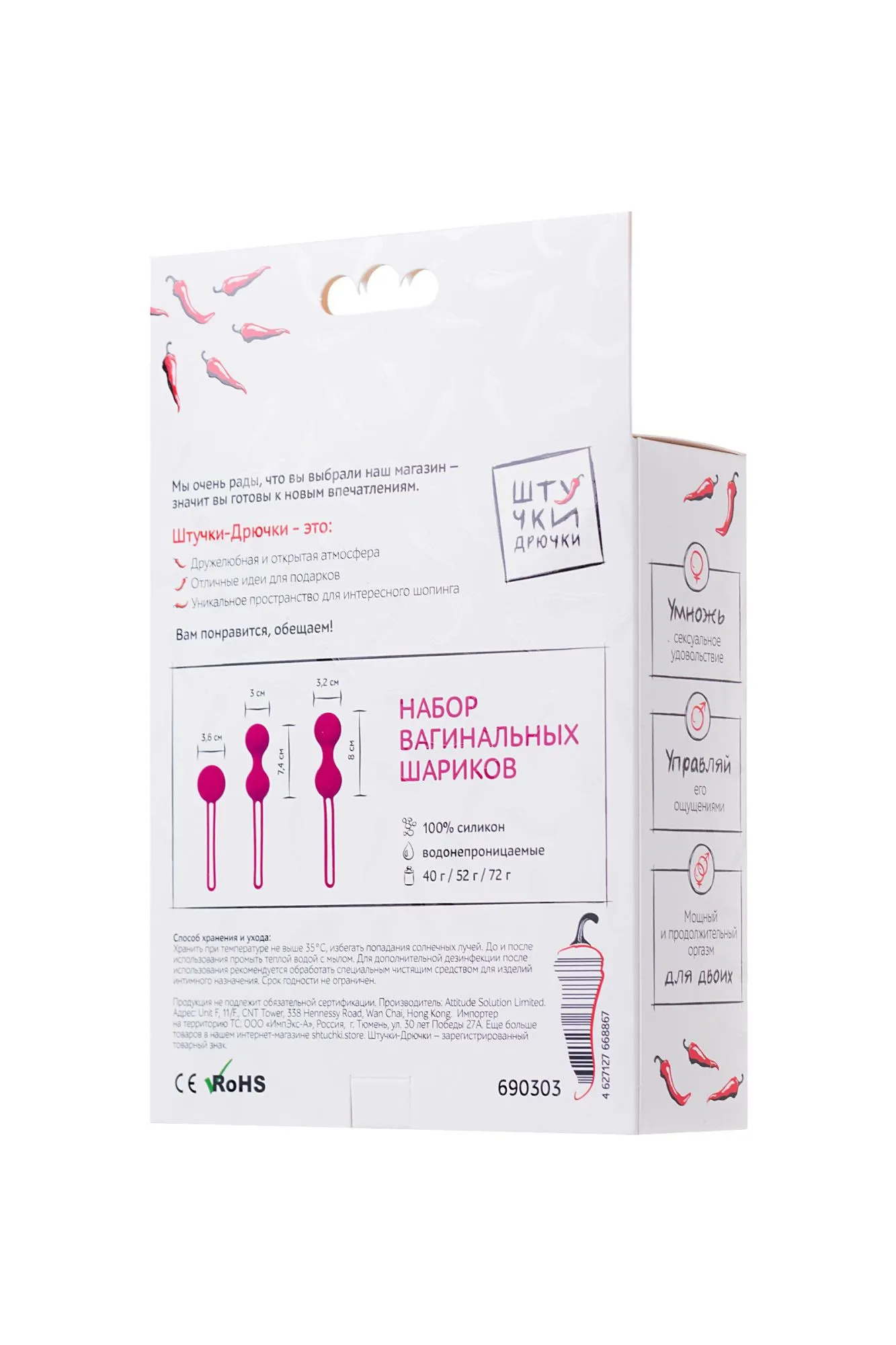Набор вагинальных шариков "Штучки-Дрючки" со смещенным центром тяжести выполнен из нетоксичного и гипоаллергенного 100% силикона высокого качества. На конце есть петля, позволяющая легко вводить и извлекать игрушку. Водонепроницаемы и просты в уходе. Идеальный способ попрактиковать упражнения Кегеля. Благодаря шарикам разной тяжести вы можете начать тренировки, даже если никогда этого не делали, постепенно увеличивая нагрузку. Вагинальные шарики "Штучки-Дрючки" укрепляют ЛК-мышцы, улучшают тонус и упругость мышц влагалища, а также помогают увеличить продолжительность и интенсивность оргазмов. Просто нанесите ваш любимый лубрикант и вставьте шарики. Они абсолютно бесшумны, а петлю для извлечения легко спрятать в нижнем белье. Рекомендуется использовать игрушку не более 2 часов, начиная с 20-30 минут ежедневно. Размеры: длина - 16,5 диаметр - 3,2; длина - 15,5 диаметр - 3; длина - 12 диаметр - 3,6