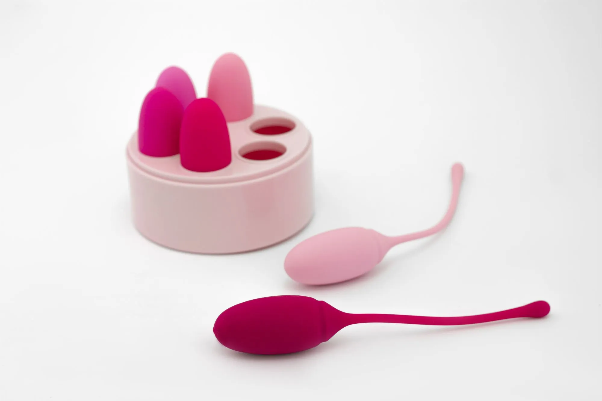 Шарики в наборе имеют массу — 30 г, 44 г, 57г, 69г, 80г, 90г, что позволит как новичкам, так и продвинутым пользователям найти подходящую нагрузку для тренировки тазового дна.