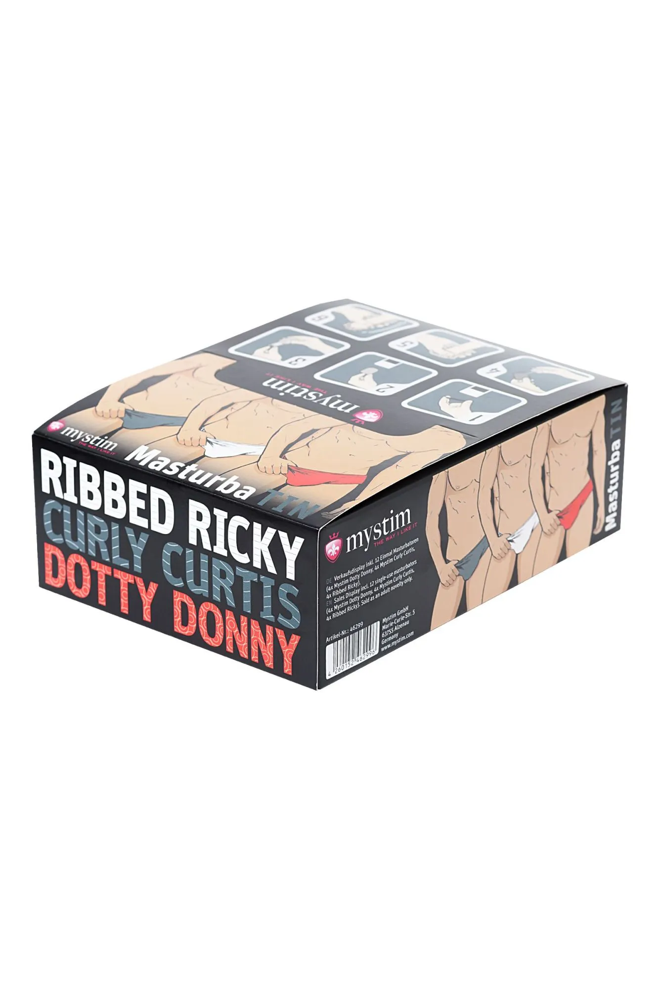 Mystim Masturba Tin-BroOnTheGo Set — горячий набор для разнокалиберного удовольствия. В него входят 3 вида мастурбаторов — 4 Curly Curtis, 4 Dotty Donny, 4 Ribbed Ricky. Curly Curtis Мастурбатор, специализирующийся на качественном эротическом массаже. Его выпуклый рельеф активно стимулирует член так, будто это делает опытная массажистка. Dotty Donny Мастурбатор для громкой сексуальной разрядки. Его преимущество — рельеф в форме точек. Именно они искусно массируют член, задействуя каждый участок и доводя до мощнейшей кульминации. Ribbed Ricky Мастурбатор для воплощения эротических фантазий в реальность. Его ребристая поверхность с первых же секунд распаляет желание, мобилизует все эрогенные точки и в итоге дарит сногсшибательный оргазм. Набор мастурбаторов Mystim Masturba Tin-BroOnTheGo Set открывает простор для сексуальных экспериментов.
