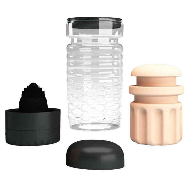 Регулировка интенсивности виброрежима осуществляется с помощью небольшого колёсика на корпусе изделия. Закручивающая крышка на колбе защищает вставку от загрязнений. Вставка имеет телесный цвет, изготовлена из приятного на ощупь материала. Небольшие выпуклости на её внутренней поверхности дают дополнительную стимуляцию.