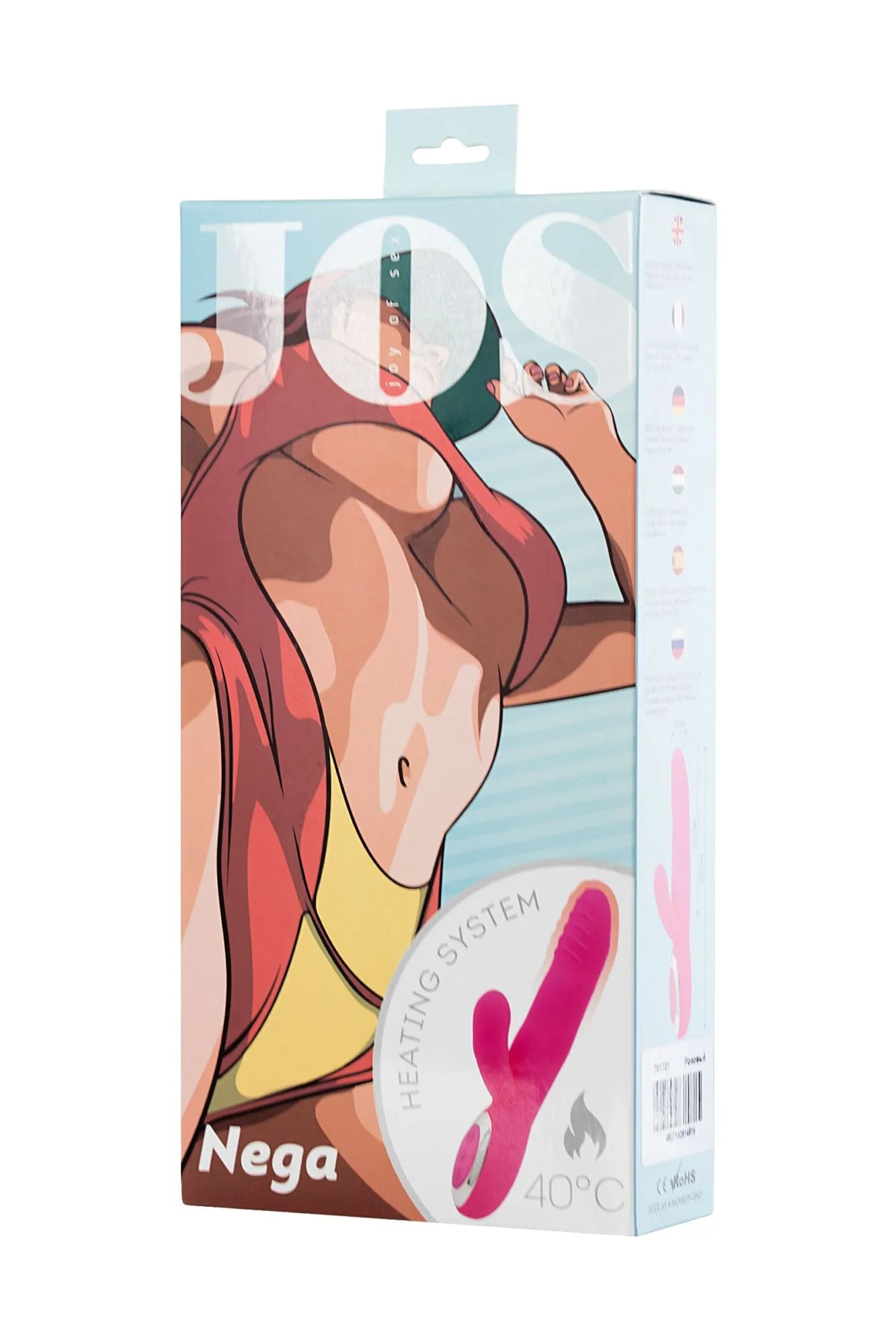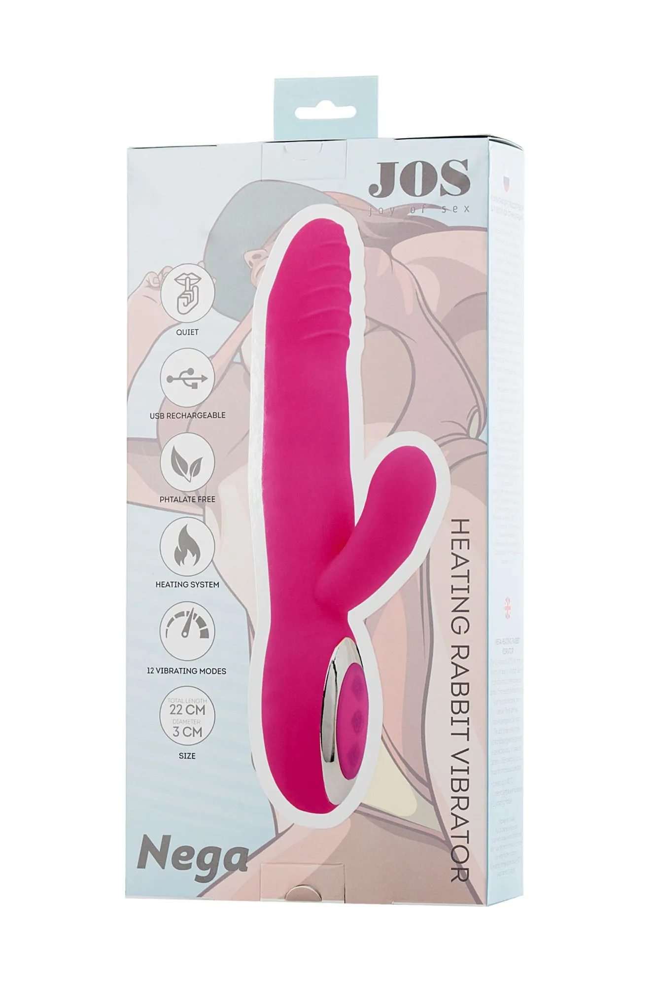 —Вибратор с подогревом для двойной стимуляции JOS NEGA, силикон, розовый, 22 см