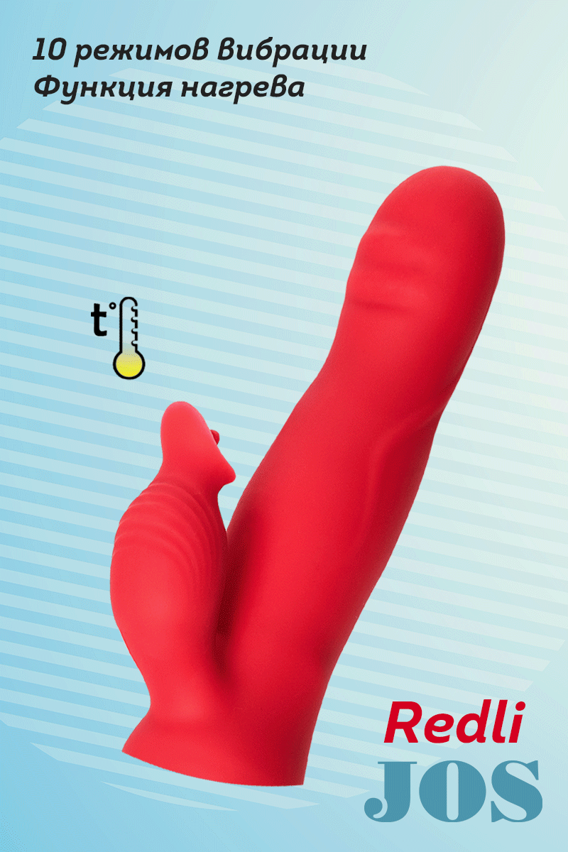 REDLI Вибратор с двигающейся головкой Redli от JOS – яркий и бойкий новичок в твоей прикроватной тумбочке. Redli не даст тебе скучать и доставит много приятных ощущений и ярких оргазмов. Мощная вибрация и возвратно-поступательные движения головки вибратора не оставят точку G без внимания. Ласковые и настойчивые движения гарантированно доведут тебя до оргазма. Клиторальный отросток будет нежно, но со знанием дела стимулировать эрогенную зону. Дополнит восхитительную игру функция нагрева – комфорт и реалистичность ощущений. Сочный красный цвет намекает на страсть и неистовые оргазмы. Изготовлен из высококачественного бархатистого силикона. заряжается от USB 10 режимов работы бархатистый силикон общая длина 21 см, рабочая длина 12 см, максимальный диаметр 3 см время работы 1 час время зарядки 1,5 часа
