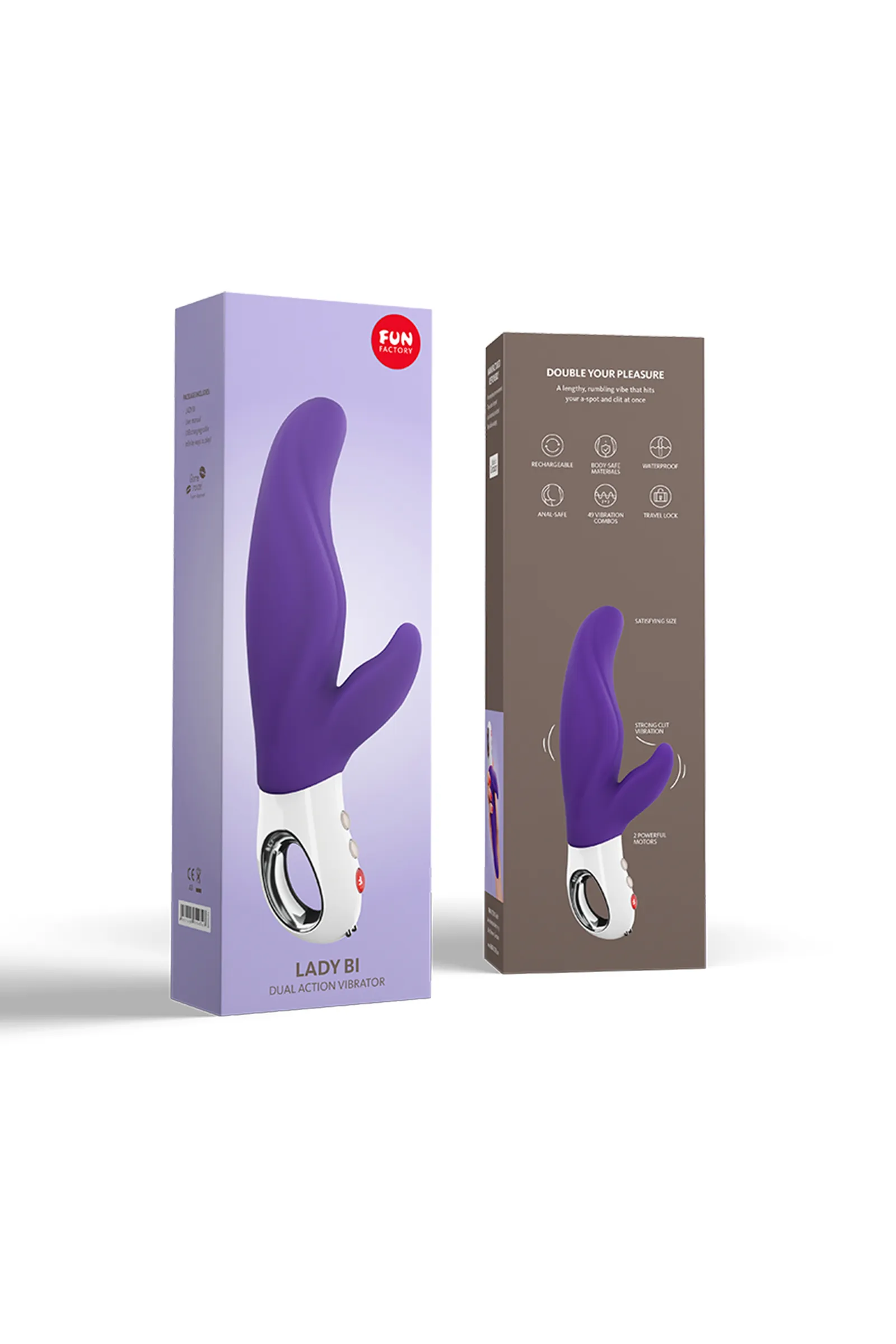 Изысканный вибратор двойного действия, выдержанный по размеру, удовлетворяющему ваши потребности Стимулирует область за шейкой матки, т.н. точку «А», что ведет к еще большему возбуждению и выделению смазки Использование технологии FlexiFUN Technology™ обеспечивает максимальное прилегание к телу Два моторчика создают объемную, глубоко проникающую вибрацию Перезаряжаем Изготовлен из безопасного для тела силикона Водонепроницаемый
