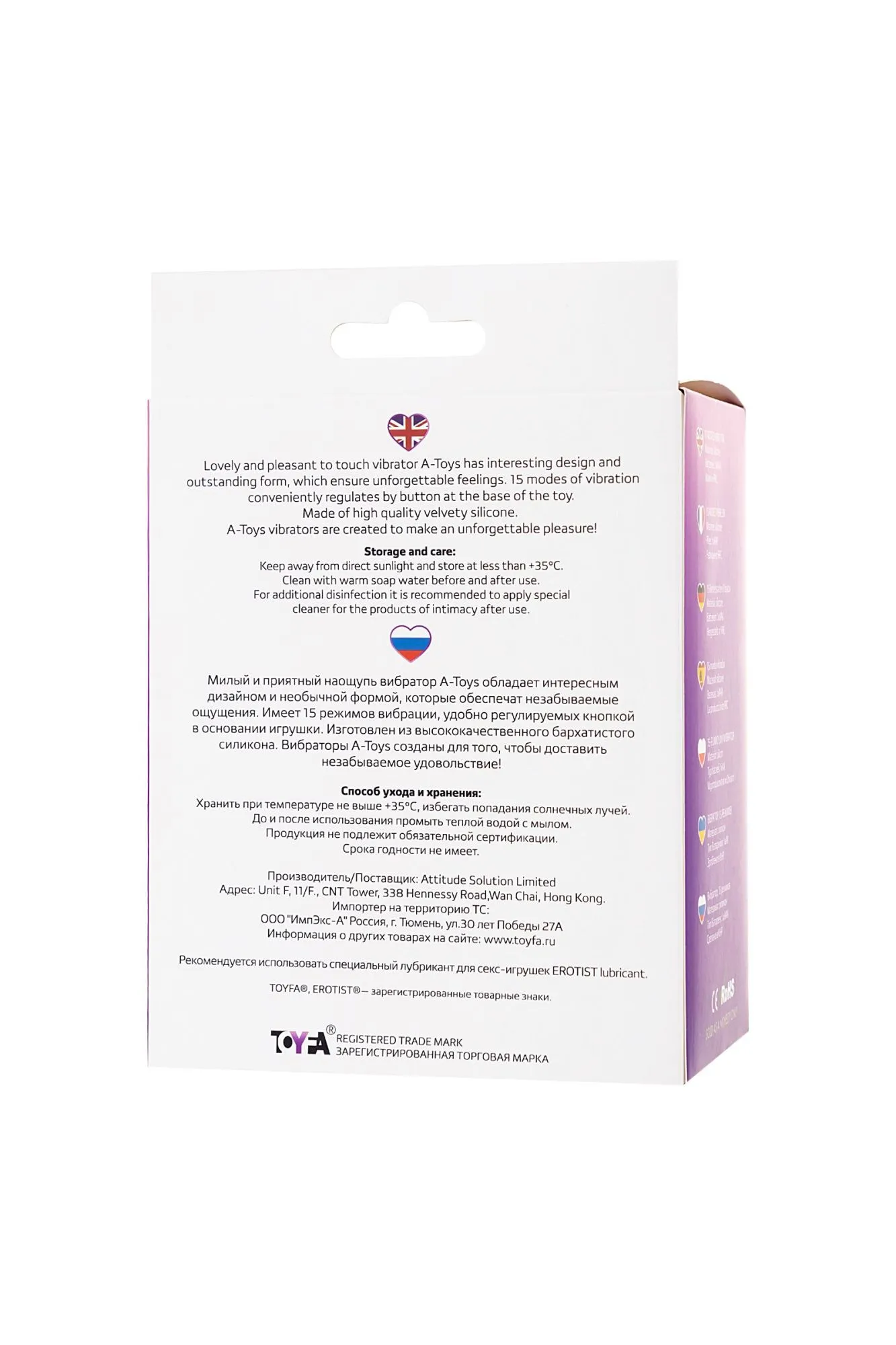 Милый и приятный наощупь вибратор A-Toys обладает интересным дизайном и необычной формой, которые обеспечат незабываемые ощущения. Имеeт 7 режимов вибрации, которые удобно регулируются кнопкой в основании игрушки. Изготовлен из высококачественного бархатистого силикона. Вибраторы A-Toys созданы для того, чтобы доставить незабываемое удовольствие!