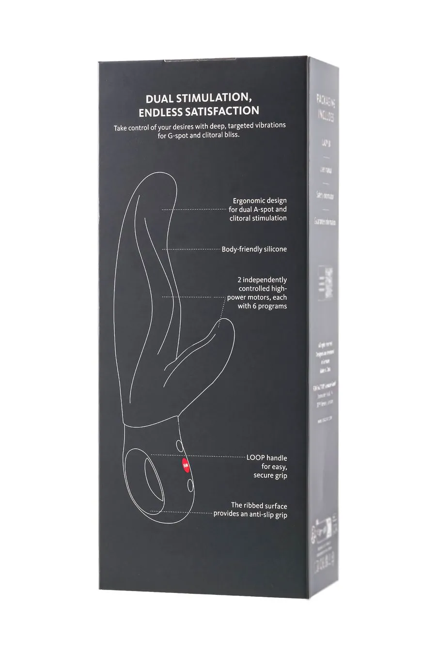 LADY BI — это мощный вибратор-кролик, созданный для получения интенсивных оргазмов благодаря эргономичному дизайну, обеспечивающему двойную, целенаправленную стимуляцию точки А и клитора. Гибкий стержень точечно массирует точку А — скрытую эрогенную зону, расположенную чуть дальше точки G. Хотите глубоких ощущений, но без проникновения? LADY BI также идеально подходит для стимуляции точки G. Благодаря впечатляющей длине в 22 см и раздельному управлению с помощью двух моторов вы можете полностью контролировать свои ощущения и настраивать их под свои желания.