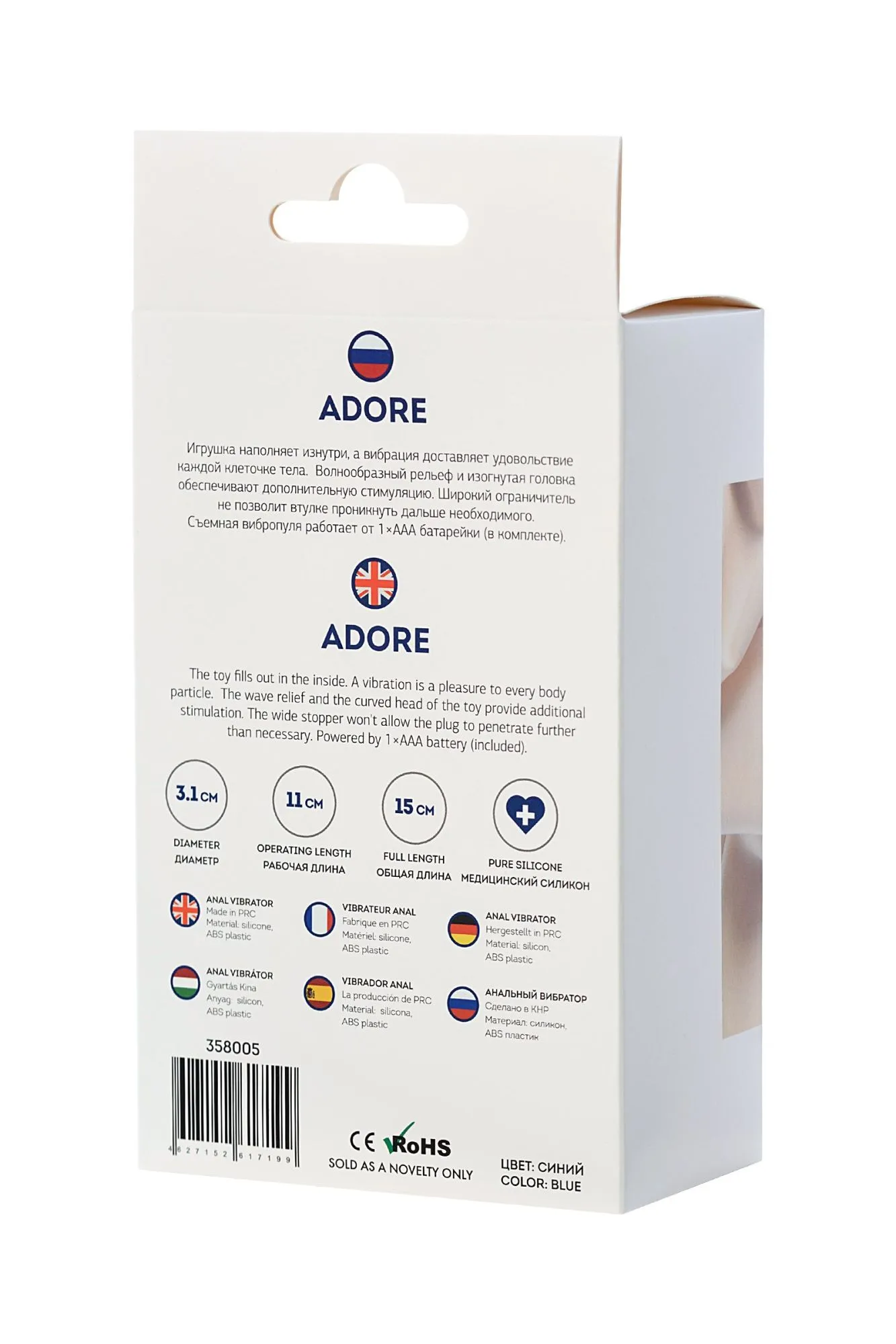 Adore Игрушка наполняет изнутри, а вибрация доставляет удовольствие каждой клеточке тела. Волнообразный рельеф и изогнутая головка обеспечивают дополнительную стимуляцию. Широкий ограничитель не позволит втулке проникнуть дальше необходимого. Съемная вибропуля работает от 1×ААА батарейки (в комплекте).