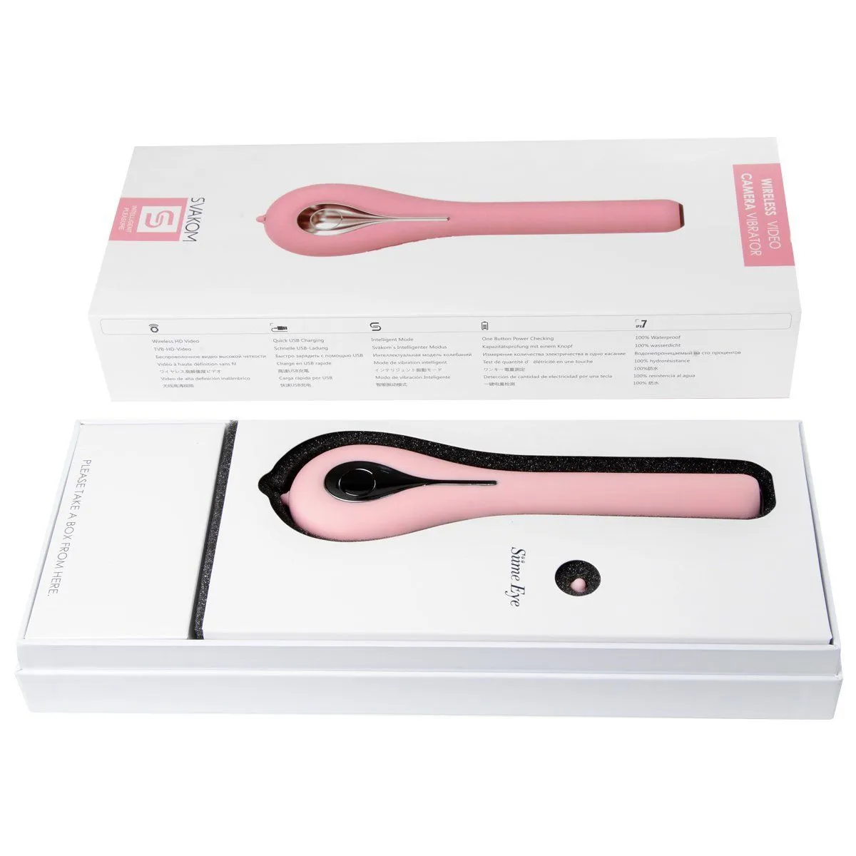 С вибратором Siime Eye обычная вагинальная стимуляция превратится в захватывающее приключение. Всё потому, что в игрушку встроена портативная видеокамера, которая легко запечатлеет процесс ласк! Просто зарядите вибромассажёр через USB (требуется 2 часа), чтобы после насладиться чувственными проникновениями бархатистого силиконового ствола. А потом, когда оргазм будет достигнут, скиньте видео на свой смартфон или компьютер. Снять видео можно даже под водой — игрушка на 100% водонепроницаема и может работать на глубине до 1 метра. Обеспечит до 2.5 часов восхитительных секс-утех. Предусмотрено 6 волнующих режимов вибрации на выбор.