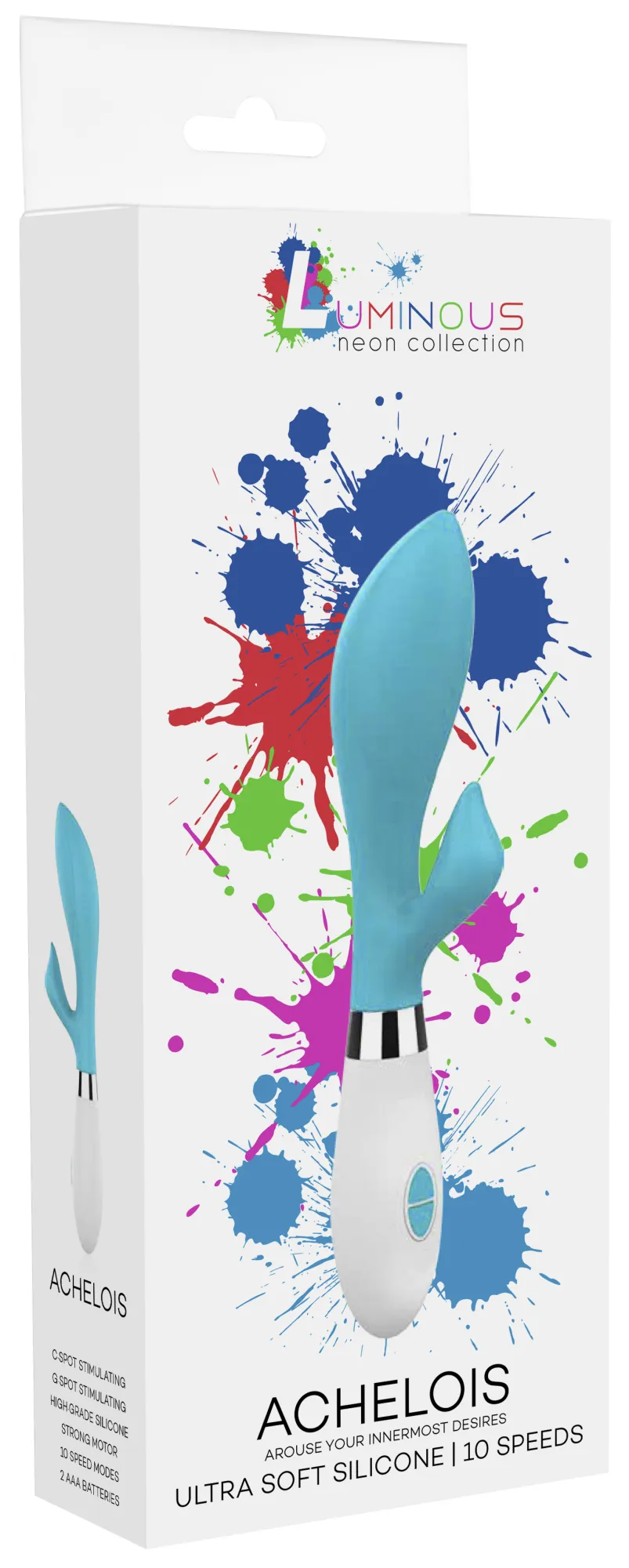 Вибратор-кролик – Achelois имеет округлую утолщённую головку и гибкий клиторальный отросток, что делает стимуляцию более яркой. Вибромассажер имеет два мощных двигателя, по одному в каждом отростке, имеющих 10 функций вибрации, способной достигать на вагинальном стволе до 7000 и на клиторальном отростке до 5200 оборотов в минуту, при этом уровень звука не превышает 50 дБ.