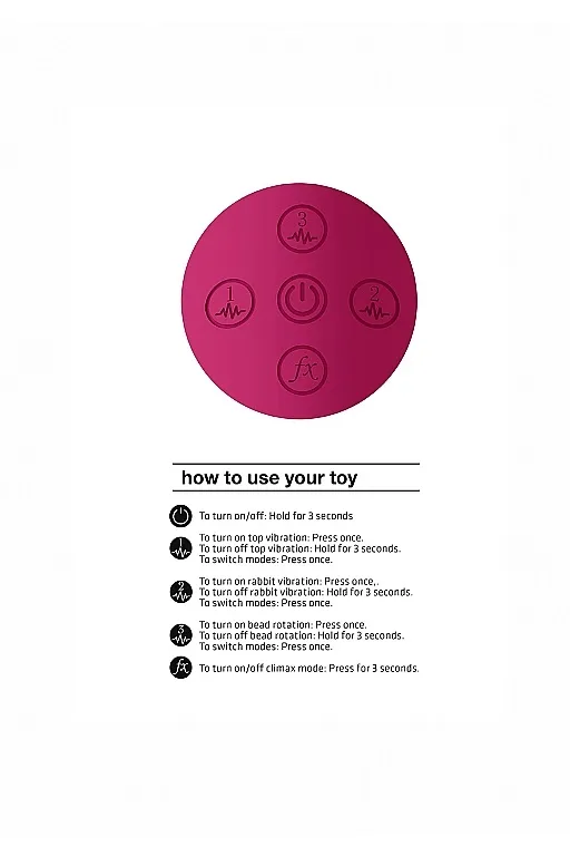 Функциональность: 10 функций вибрации в каждом из отростков, 10 функций ротации и функция «мгновенный оргазм»