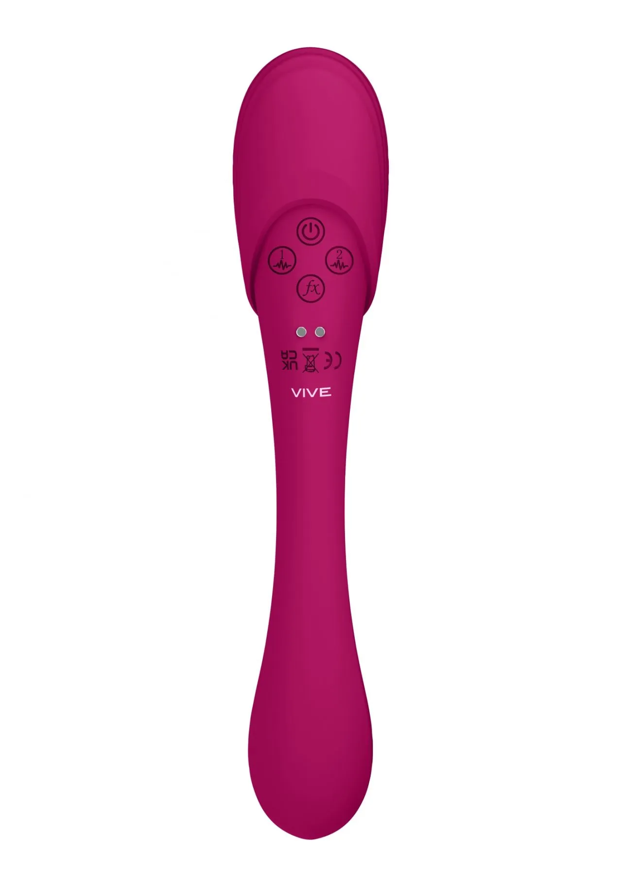 Изготовлено изделие из шелковистого медицинского (гипоаллергенного) силикона и как большинство моделей линейки VIVE имеет кнопку мгновенного оргазма, запуская все моторы на максимум одним касанием.