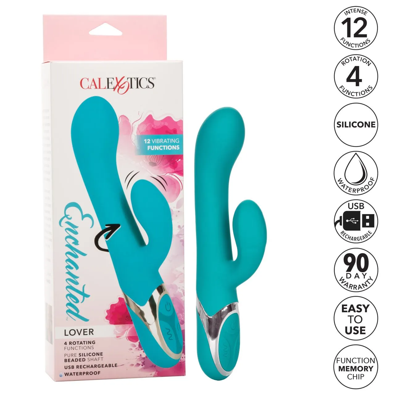 Enchanted Lover - перезарежаемый, вибромассажер кролик с 4 рядами вращающихся шариков. Он изготовлен из бесшовного, гипоаллергенного, безопасного для тела, не содержащего фталатов силикона премиум-класса без запаха. Два мощных мотора обеспечивает 12 интенсивных режима вибрации и 4 функций вращения вала.