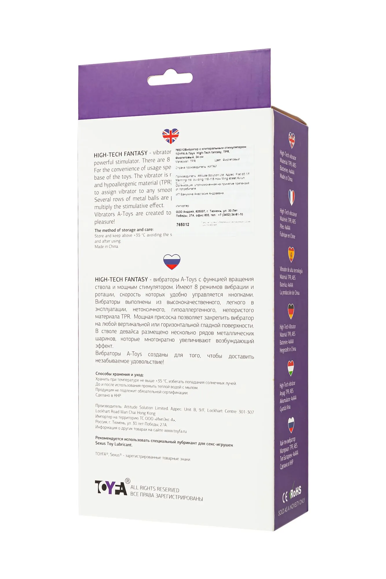 —Вибратор с клиторальным стимулятором TOYFA A-Toys High-Tech fantasy, TPR, фиолетовый, 24 см