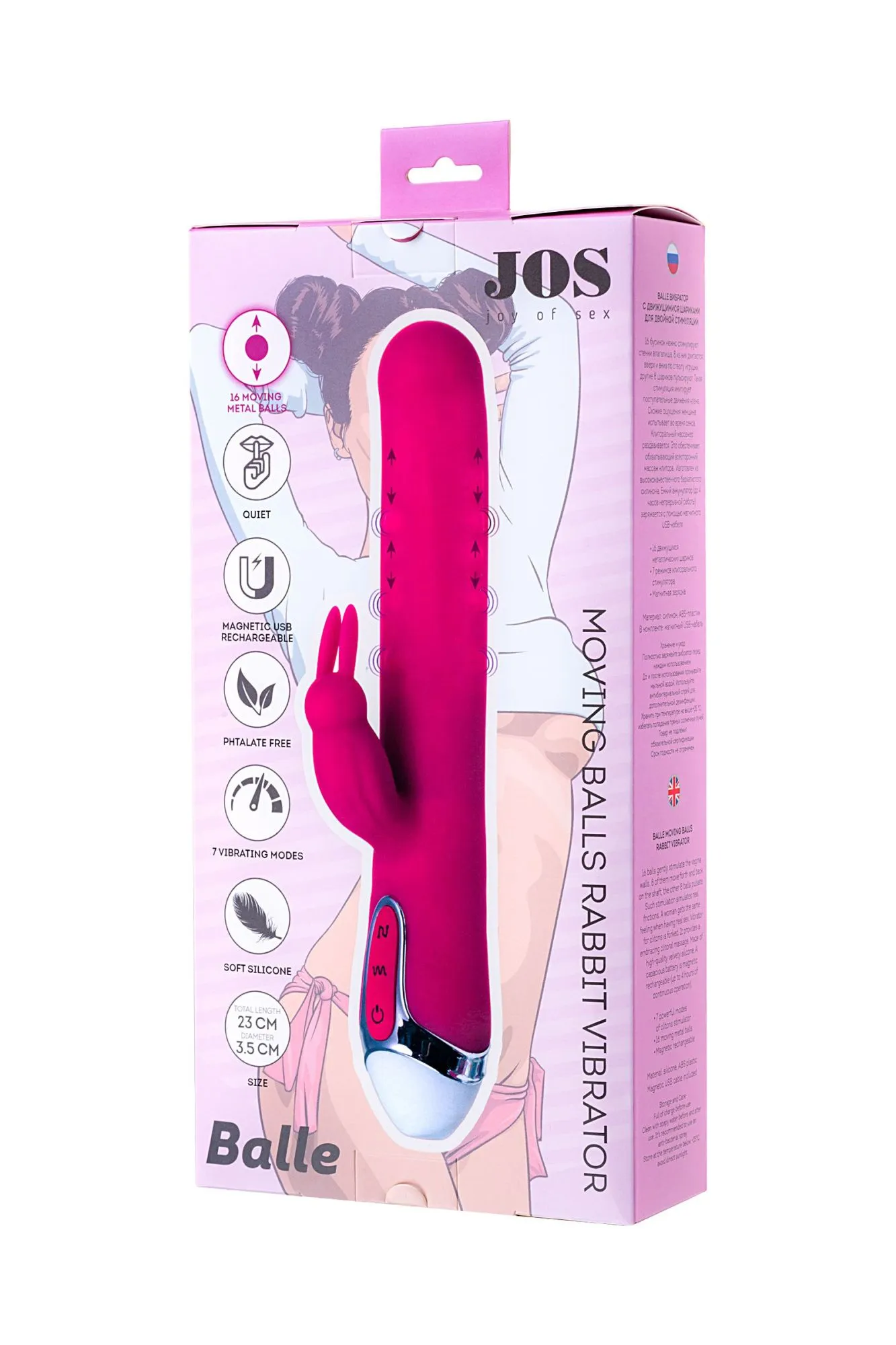 Вибратор с клиторальным стимулятором JOS BALLE, с движущимися шариками, силикон, розовый, 23 см