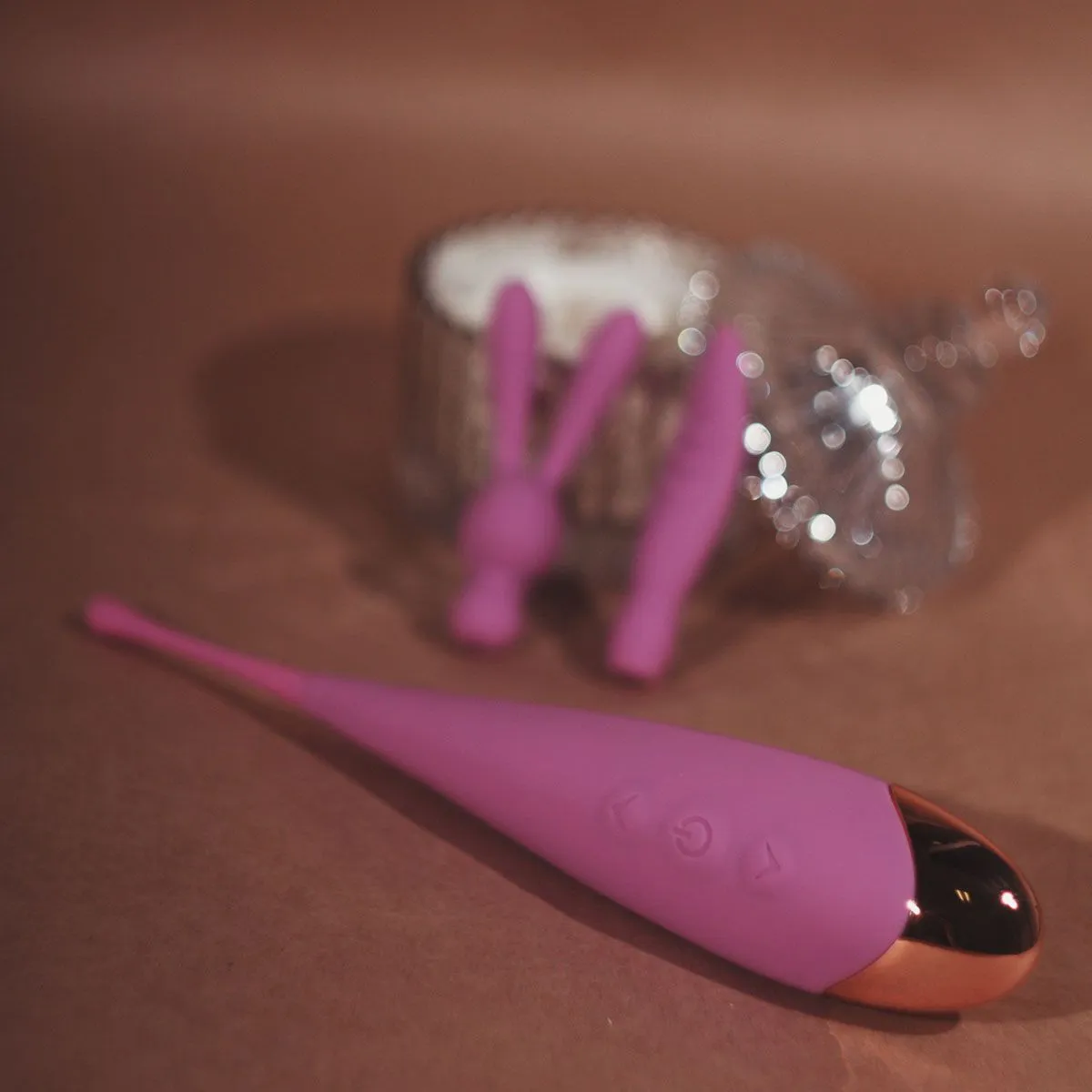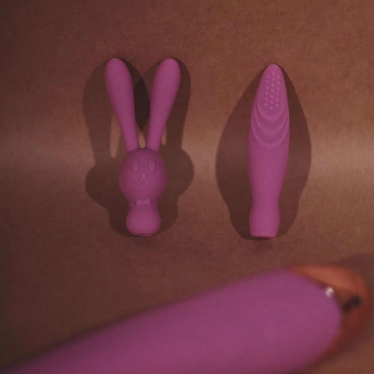 В комплекте к массажеру идут две насадки. Одна игривая для настроения в виде зайчика, и вторая для более ярких ощущений с небольшими шипиками. Используйте насадки чтобы возбудить партнёра лаская его чувствительные зоны, или сделайте расслабляющий массаж в ванне, этот девайс водонепроницаем.