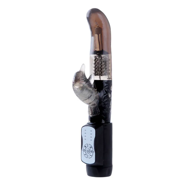 Небольшой вибратор с функциями вращения ствола и мощным клиторальным стимулятором в форме дельфина с 12ю режимами вибрации. Регулируется кнопками на основании. Вращение осуществляется при помощи металлических шариков , расположенных внутри изделия. Очень мягкий, рельефный, имеет не пористую структуру. Водонепроницаемый. Материал изготовления - ПВХ (гель). Работает от трех батареек типа ААА ( в комплект входят). Рабочая длина 12 см, диаметр 3 см, длина стимулятора 6 см, диаметр 3 см.