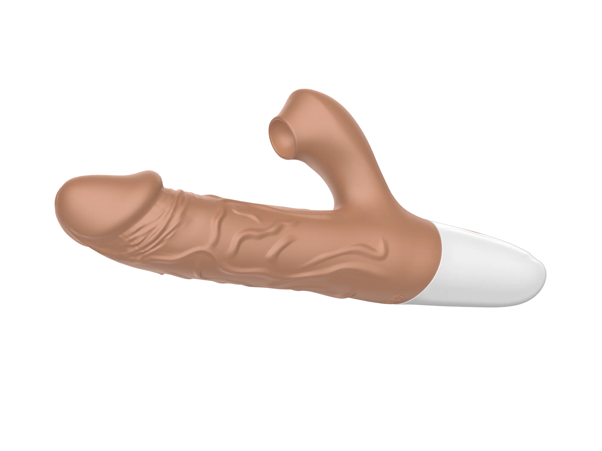 Вибратор-кролик в реалистичном дизайне в виде мужского пениса с текстурированными венами для большей стимуляции. Вибратор оснащен 10 режимами вибрации, 3 режимами пенетрации и 7 режимами сосания, что позволяет подобрать идеальную комбинацию для любого настроения.   Изготовленный из мягкого и безопасного силикона с ABS-пластиком, вибратор приятен на ощупь и гипоаллергенен. Водонепроницаемость IPX7. Вес: 222 г., размеры: 225*90*40 мм. Длина клиторального отростка - 5см, ширина - 2,7см, диаметр раструба - 1,5см.  Устройство оснащено перезаряжаемой литиевой батареей, которая обеспечивает до 45 минут работы. При этом уровень шума не превышает 50 дБ, гарантируя тихую и дискретную эксплуатацию.