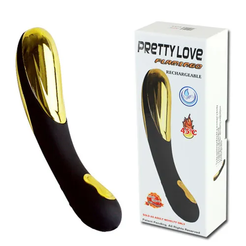 Премиум-вибромассажер черно-золотистого цвета. Выполнен из силикона с металлическими вставками. Имеет функцию нагрева ( нагреваются металлические вставки). Температурный режим - до 45 градусов. 7 режимов вибрации управляются с помощью кнопки, расположеной на ручке игрушки, там же и кнопка управления нагревом. Работает от USB шнура. В комплекте сумочка для хранения. Длина - 16 см, максимальный диаметр - 3 см. Упаковка - картонная коробка.
