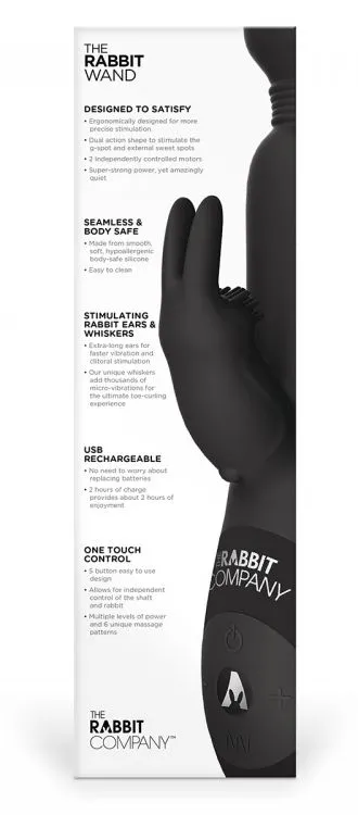 The Rabbit Wand представляет собой два самых популярных вибратора (Wand и кролик), которые были совмещены в один многофункциональный вибратор от компании The Rabbit Company. Крупная и упругая головка игрушки обеспечит мощную стимуляцию вагины или внешних эрогенных зон, а небольшой отросток в виде кролика - интенсивную стимуляции клитора.