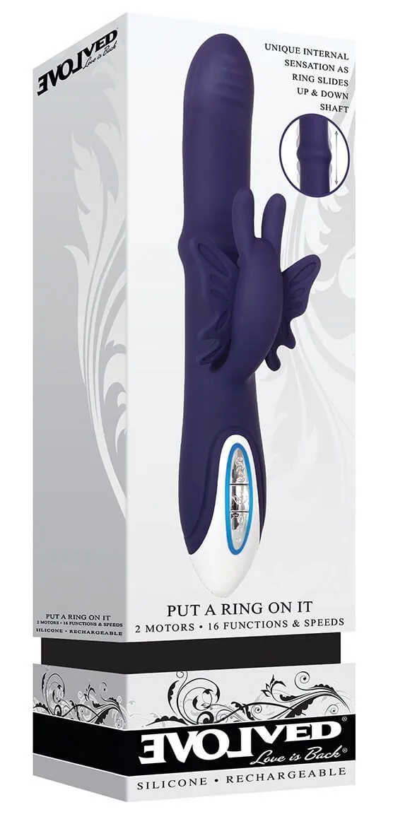 PUT A RING ON IT - это потрясающий вибратор от компании Evolved, обладающий одновременной стимуляцией клитора и перемещающимся по стволу кольцом, которое массирует стенки влагалища изнутри.