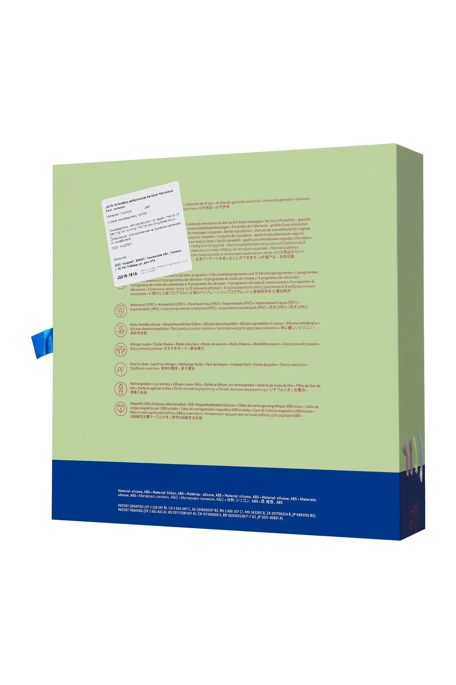 Fabulous Four – это фантастический набор из четырех топовых девайсов для сексуальных радостей: вакуум-волновой стимулятор с увеличенным раструбом, массажер-ванд, классический вибратор и вибратор-кролик. Великолепная четверка Fabulous Four от знаменитого бренда Satisfyer станет персональным проводником в мир удовольствия и наслаждения. С этим набором легко познавать возможности своего тела и партнера. Аккумулятор находится в основании, на котором фиксируются сменные насадки, каждая насадка имеет мощный мотор и 12 режимов вибрации. Вибратор-кролик с погружной длиной 12,5 см и диаметром 3,5 см с двумя моторами позволит ощутить всю прелесть стимуляции зоны G и клитора. Классический вибратор с рабочей длиной 11 см и массажер-ванд длиной 13 см обладают такой же глубокой проникающей вибрацией, способной расслаблять мышцы тела и снимать напряжение. Вакуум-волновой стимулятор имеет расширенный раструб, что позволяет стимулировать не только клиторальную зону, но и область сосков и головки полового члена. Fabulous Four предлагает попробовать вместе с партнером всевозможные виды стимуляции: клиторальную, вагинальную и анальную, а также массаж тела и эрогенных зон. Особенности: 4 сменные насадки с разнообразной стимуляцией для полного удовлетворения Простое управление кнопками на корпусе. Стильный современный дизайн в трендовых цветах. 12 режимов вибрации и 11 режимов волновой стимуляции. Нежный эластичный силикон без запаха, аллергенов и вредных для здоровья веществ. Инструкция с подсказками по применению на внутренней стороне упаковки. 100% водонепроницаемый - IPX7. Время работы 60 минут. Перезаряжаемый аккумулятор через USB-кабель, время зарядки 3 часа.