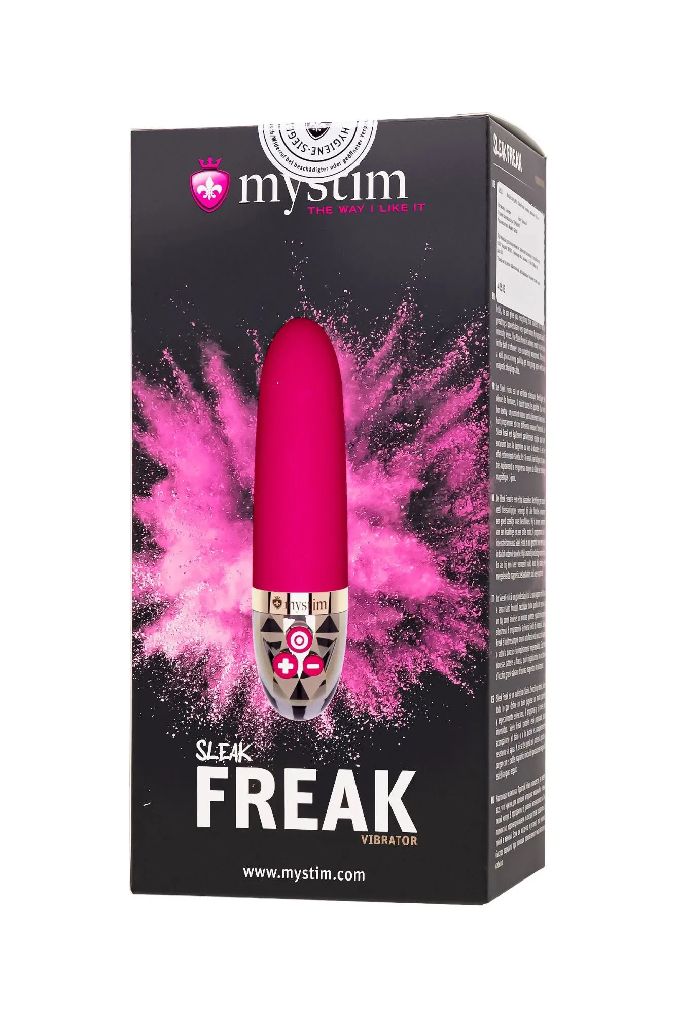 С мини-вибратором Mystim Sleak Freak каждое прикосновение становится волшебным. Этот классический вибратор обладает всем, что вам нужно для незабываемых моментов наслаждения. Удобный дизайн и компактные размеры делают его идеальным спутником в путешествиях или первой игрушкой для новичков. Мягкий округлый кончик нежно прикасается к чувствительным местечкам, принося настоящее блаженство. Миниатюрные размеры - рабочая длина всего 9,5 см, а максимальный диаметр - 3,6 см. Освойте искусство наслаждения в разных формах. Выберите внутреннюю или внешнюю стимуляцию при помощи 8 режимов и 5 вариантов мощностей. От нежных волн до ярких импульсов — создавайте свою симфонию удовольствия. Sleak Freak составит компанию в соло-играх, в прелюдии с партнером, а также в душе и ванной. Он абсолютно водонепроницаем! Простое управление при помощи кнопок на ручке, с блокировкой от случайных нажатий, обеспечивает комфортный контроль над вибрацией. Чтобы включить или отключить блокировку кнопок, одновременно нажми и удерживай кнопку вибрации и кнопку “Минус” или “Плюс” в течение 3 секунд. (При этом кнопки несколько раз кратковременно мигнут.) Внимание: новое устройство поставляется с включенной блокировкой кнопок, поэтому перед первым использованием блокировку нужно отключить Вибратор сделан из медицинского платинового силикона, гарантируя приятные ощущения и бережное отношение к коже. Привлекательный и элегантный дизайн Mystim Sleak Freak совмещает простоту и интригу. Роскошная ручка-держатель выполнена из прозрачного ABS-пластика и украшена зеркальными элементами Сделайте свои движения еще более гармоничными с лубрикантом на водной основе. После ваших игр, просто очистите вибратор с водой и очищающим средством для интимных игрушек, и он будет готов к следующей встрече. Магнитная зарядка гарантирует удобство – для зарядки вибратора просто подключите USB-кабель к игрушке. Откройте для себя мир возможностей с его помощью: Классический дизайн и интуитивное управление Миниатюрные размеры, максимальное удовольствие: длина 14,5 см, диаметр 3,6 см 8 режимов вибрации для неповторимых ощущений 5 уровней интенсивности для настройки под вас Мощный и при этом тихий мотор Изготовлен из 100 % медицинского платинового силикона. Цвет - малиновый Магнитное USB-зарядное устройство Mystim в комплекте Водонепроницаемость на глубине до 1 метра в течение получаса