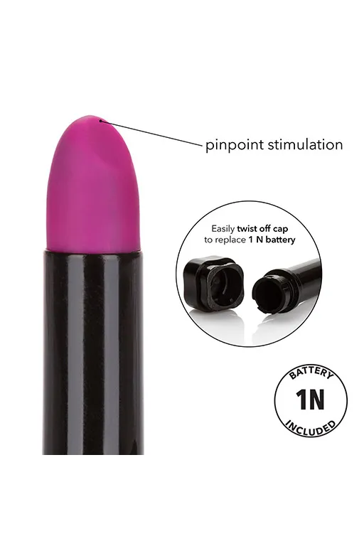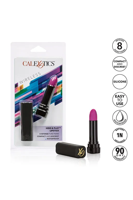 Hide & Play Lipstick – миниатюрный вибромассажер, выполненный в виде простой помады. Корпус изготовлен из гладкого, не содержащего фталатов АБС-пластика, покрытого атласным полеуретановым покрытием, а головка выполнена из гипоалергенного силикона. Мощный мотор обеспечивает мультискоростную вибрацию.