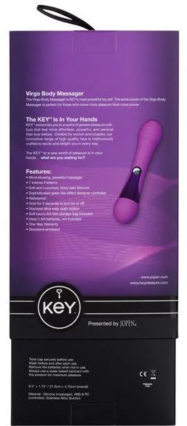 Вибратор Key - Virgo подарит Вам истинный восторг от его использования. Он изготовлен из высококачественного силикона, водонепроницаемый, есть 7 различных режимов вибрации. Данный вибратор разрабатывался специально, чтобы Вы смогли получить истинное наслаждение и оказаться на седьмом небе от удовольствия. Он удобен и безопасен, способен подарить Вам запредельные ощущения - что же еще нужно для получения истинного удовольствия? В серии Jopen много других запоминающихся вибраторов, но Virgo - один из наиболее утонченных и стильных.