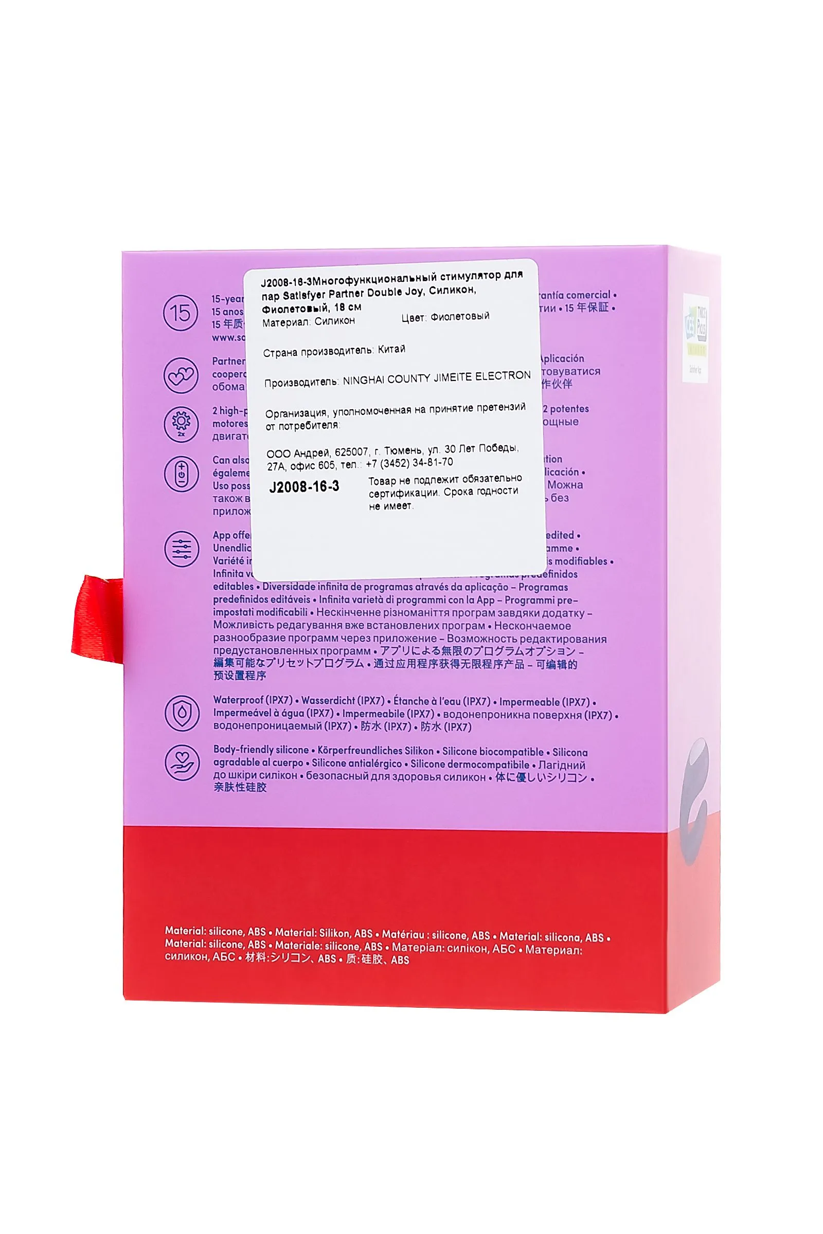 Многофункциональный вибратор для пар Partner Double Joy — еще больше стимуляции и чувственного удовольствия для обоих партнеров! Отличительная особенность Partner Double Joy — два моторчика и увеличенный диаметр вагинальной части. С ними стимуляция клитора, точки G и пениса возрастает в разы, что приводит к ошеломляющему по своей интенсивности наслаждению. Усиливает это наслаждение двойная вибрация! Позвольте себе большее — позвольте себе Partner Double Joy! Partner Double Joy синхронизируется с вашим телефон, через приложение- Satisfyer Connect!!! Satisfyer Connect Satisfyer Connect приглашает вас в захватывающую вселенную, где расстояние не имеет границ, а чувства пробуждаются новыми и захватывающими способами. С помощью постоянно расширяющегося ассортимента сексуальных велнес-устройств, подключенных к Bluetooth ™, вы сможете исследовать чувственный мир непревзойденного удовлетворения. Независимо от вашего пола, поколения или сексуальных предпочтений, являетесь ли вы интровертным одиночным игроком, экстравертным искателем приключений или парой в отношениях на близких или больших расстояниях, наше приложение предоставляет ряд эксклюзивных функций и контента, которые помогут вам получить максимум от ваших чувственных исследований. Добро пожаловать в наш мир! Вот что вы получите - бесплатно !!! Бесчисленные новые способы играть и открывать! С Satisfyer Connect вы можете расширять и персонализировать вибрационные программы в соответствии с вашими уникальными потребностями. Вы можете свободно пользоваться разнообразным и растущим ассортиментом Bluetooth-устройств Satisfyer. Смешивайте и подбирайте программы, используя наши интуитивно понятные сенсорные элементы управления, или загружайте что-то свежее из нашей постоянно расширяющейся онлайн-библиотеки программ стимуляции. Наша функция интеграции устройств позволяет вам дополнительно расширить свой репертуар удовольствия - вы можете использовать до 4 игрушек одновременно, если вы открыты для этого! С помощью прикосновения пальца наша функция тактильного программирования предлагает вам создать в данный момент. Нарисуйте идеальную эротическую программу прямо на сенсорном экране. Или выразить себя, записав свои собственные живые сеансы игры и расслабиться и испытать полное блаженство, когда вы воспроизводите их. Поделись удовольствием с другими людьми! Зачем ограничивать веселье для себя? Раздел удаленного партнера нашего приложения предлагает множество возможностей для связи с другими через ваши устройства с доступом в Интернет. Это все об интерактивных эротических впечатлениях, независимо от того, с кем вы решите связаться - с вашим нынешним партнером или с кем-то новым, решать только вам! Испытайте азарт управления чужими устройствами через сетевое соединение. Или откажитесь от управления собственным устройством и синхронизируйте с вашим партнером, чтобы делиться одними и теми же ощущениями одновременно, независимо от того, в какой точке мира вы находитесь. Satisfyer Connect не имеет границ - в настоящее время мы поддерживаем более 25 языков. Интегрированные функции чата / звонка и видеовызова гарантируют приятное интимное общение, к которому вы привыкнете (будьте осторожны!) Поток с течением, вы будете удивлены! Вы готовы к непредсказуемым приключениям? Используйте свои носимые устройства и подключитесь к функции окружающих зву