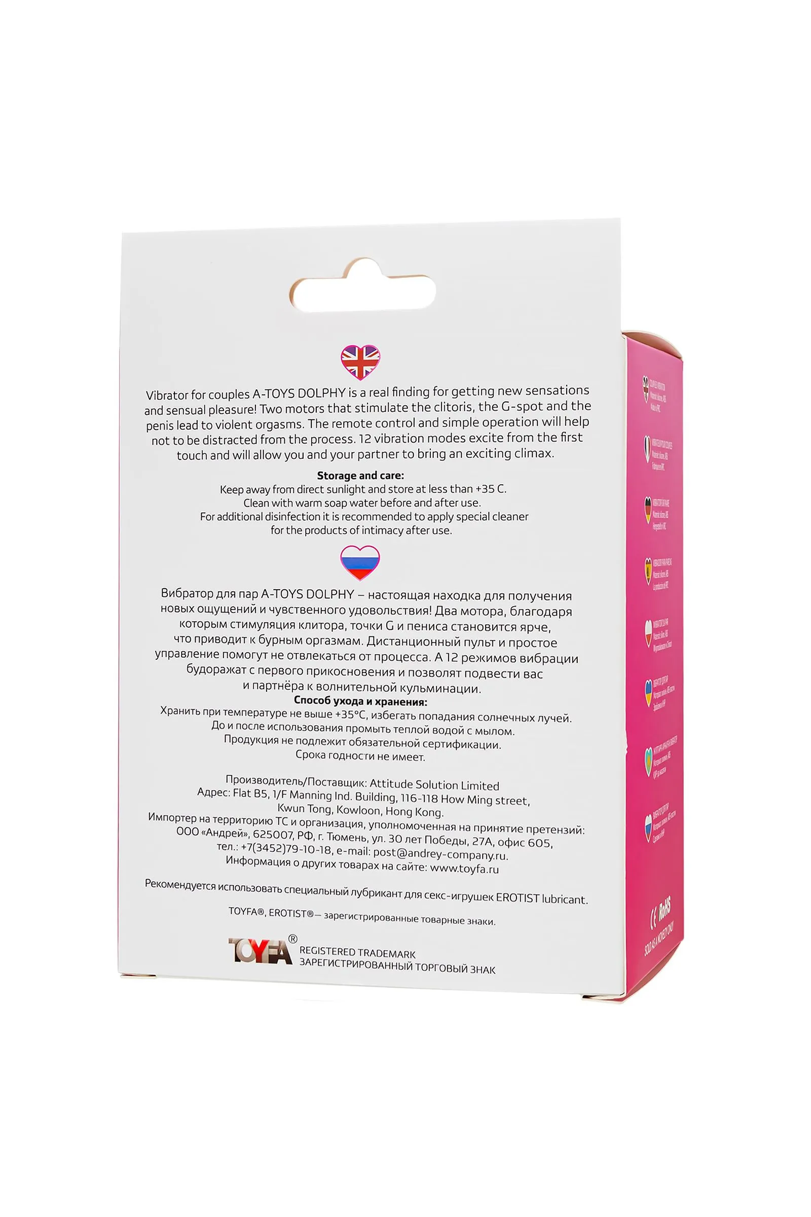 Вибратор для пар A-TOYS DOLPHY – настоящая находка для получения новых ощущений и чувственного удовольствия! Два мотора, благодаря которым стимуляция клитора, точки G и пениса становится ярче, что приводит к бурным оргазмам. Дистанционный пульт и простое управление помогут не отвлекаться от процесса. А 12 режимов вибрации будоражат с первого прикосновения и позволят подвести вас и партнёра к волнительной кульминации. пульт дистанционного управления 12 режимов вибрации магнитная зарядка