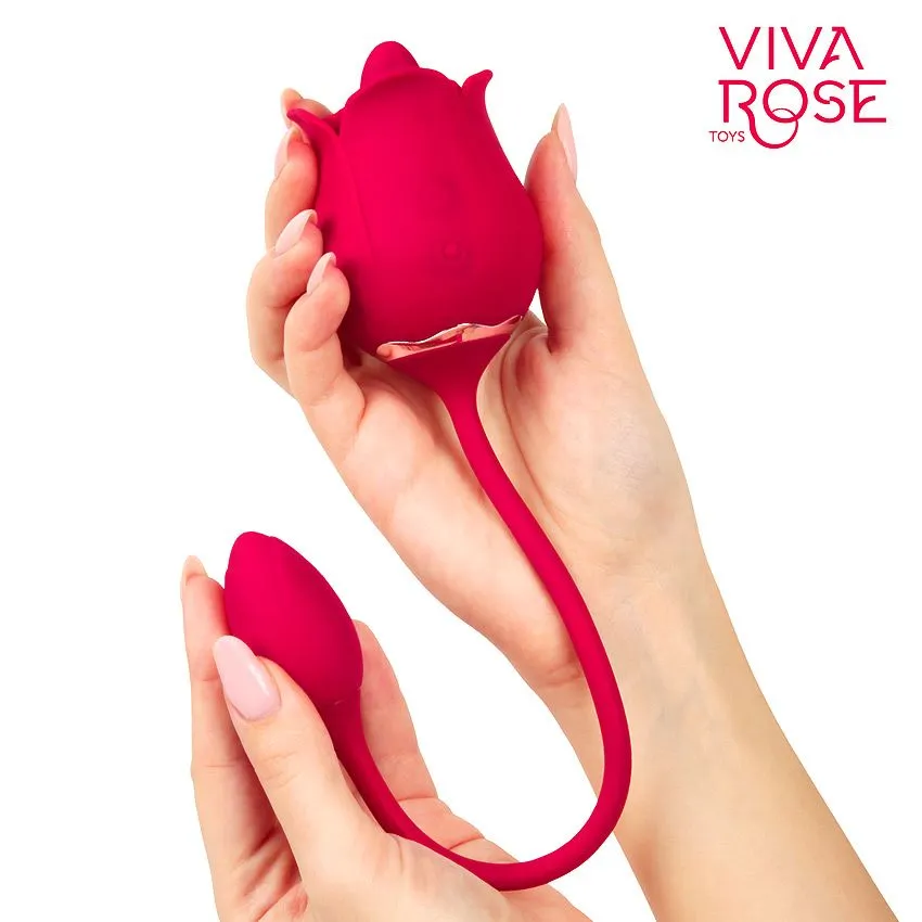 Интимный аксессуар в виде бутонов роз для стимуляции влагалища, клитора, сосков и других эрогенных зон. Игривый язычок внутри большого цветка имеет девять вариантов вибрации и движения, даря потрясающие ощущения. Девять режимов вибрации бутона меньшего размера усилят уровень возбуждения. Вибрация ощущается и в маленьком бутоне, и в соединительном шнурке. Язычок в большем бутоне и вибрация в меньшем могут работать одновременно или по отдельности.