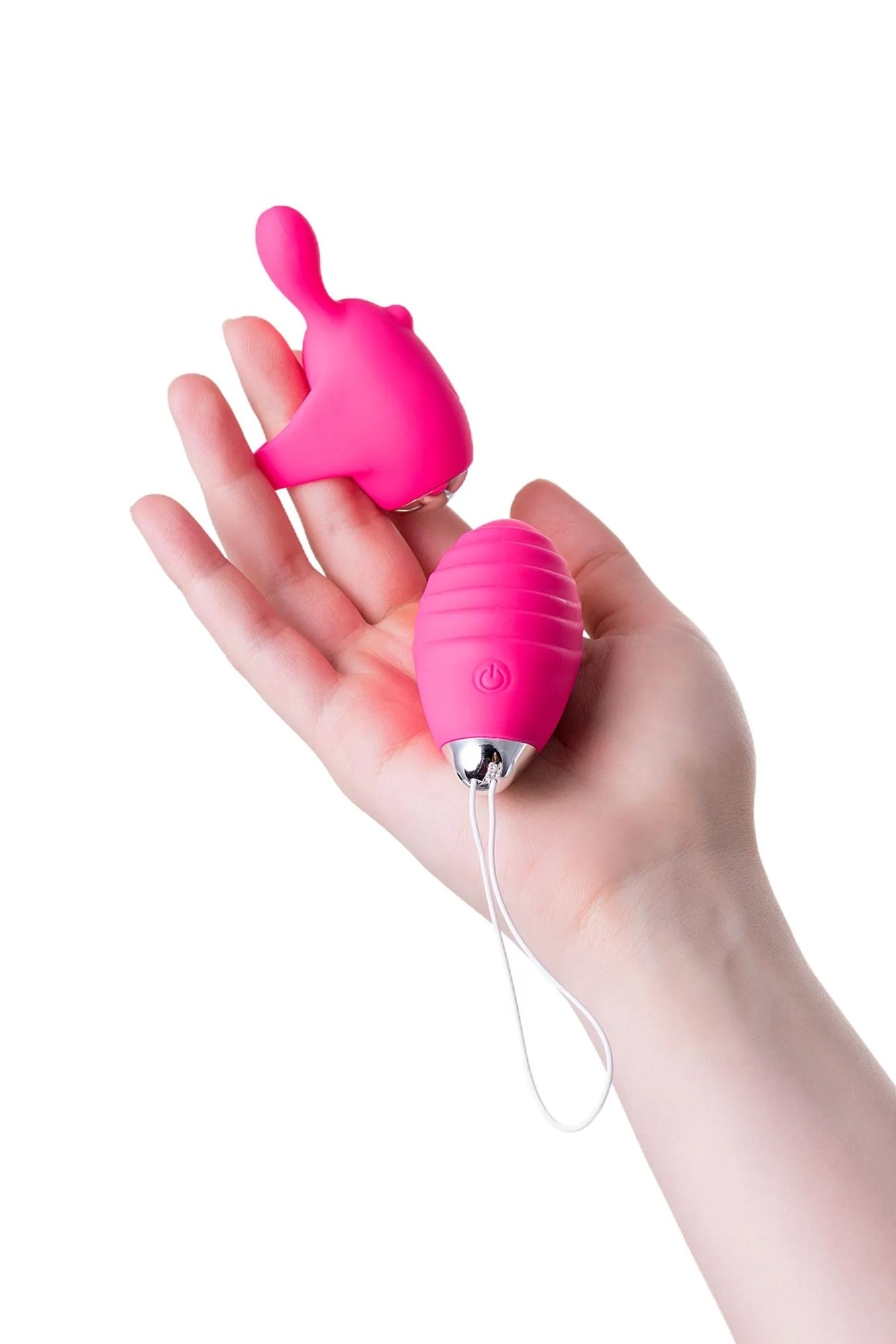 Виброяйцо и вибронасадка на палец JOS VITA, силикон, розовые
