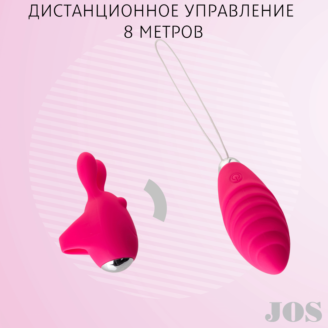 —Виброяйцо и вибронасадка на палец JOS VITA, силикон, розовые