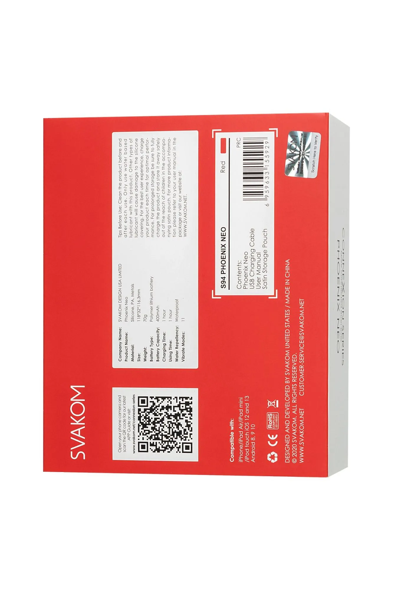 Даже находясь вдалеке друг от друга, вы можете подарить наслаждение своей второй половинке. Не нужно почтовых голубей, за передачу удовольствия на расстоянии отвечает Феникс. Благодаря возможности управления через приложение, вы можете стать ближе, как никогда раньше. Svakom Phoenix Neo имеет 11 различных режимов вибрации, заставляющих вас изгибаться от мощного возбуждения и прицельно стимулировать зону G. Phoenix Neo знает все способы подразнить и доставить вам удовольствие - от сочной прелюдии до умопомрачительной стимуляции. Светодиодный индикатор с подсветкой загорается на кончике хвоста и создает синхронизацию с вибрациями игрушки. Phoenix Neo изготовлен с использованием самых современных технологий и имеет водонепроницаемый дизайн, что делает его очень простым в очистке и отличным союзником в ванной, душе или гидромассажной ванне. Phoenix Neo разработан с магнитной зарядкой, просто поднесите кабель к порту, и он защелкнется - что может быть проще. Если вы хотите использовать у игрушки классические режимы или синхронизировать вибрацию с музыкальными треками - функциями можно управлять через Svakom App. Если интересна тема теледильдоники, хочется попробовать игрушку с управлением на расстоянии, попробовать синхронизировать вибрацию с любимым порно-роликом, то тогда управлять можно через Feel Connect 3. Svakom Phoenix Neo - это воплощение заботы, элегантности, моды и интеллекта. Материал: безопасный для тела силикон + ABS Режимы вибрации: 11 Размер: 3,2 см × 11,8 см Вес: 70 г Цвет: красный Заряжается: USB Время зарядки: 1 час Используемое время: 1 час Водонепроницаемость: IPX7 Интерфейс: Bluetooth В комплекте: Вибратор Phoenix Neo, мешочек для хранения, зарядный кабель USB, гарантийный талон, руководство. Страна бренда: США